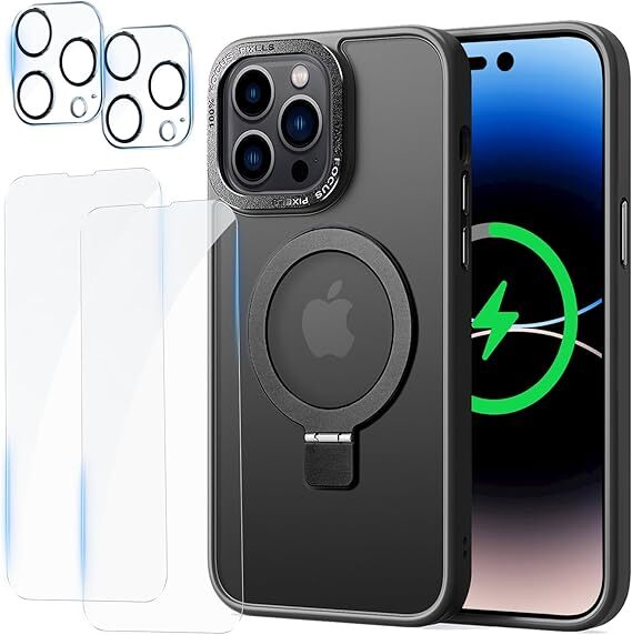 iPhone 14 Pro 用 ケース MagSafe対応 マグネット搭載 ワイヤレス充電 半透明 リング ワイアレス充電対応 マット感 アイフォン14Pro