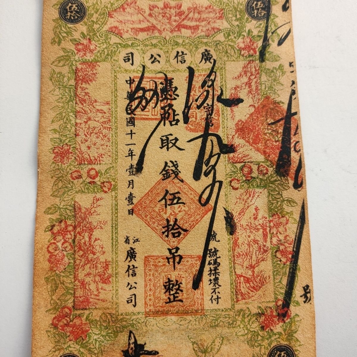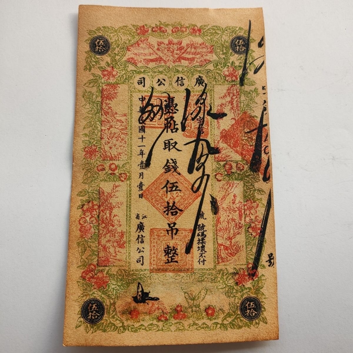 送料無料 中国紙幣 民国十一年黒龍江広信銀行五十元 銀票 美品 外国紙幣 鑑賞 工芸品 簡易包装 郵便発送 ZH1083