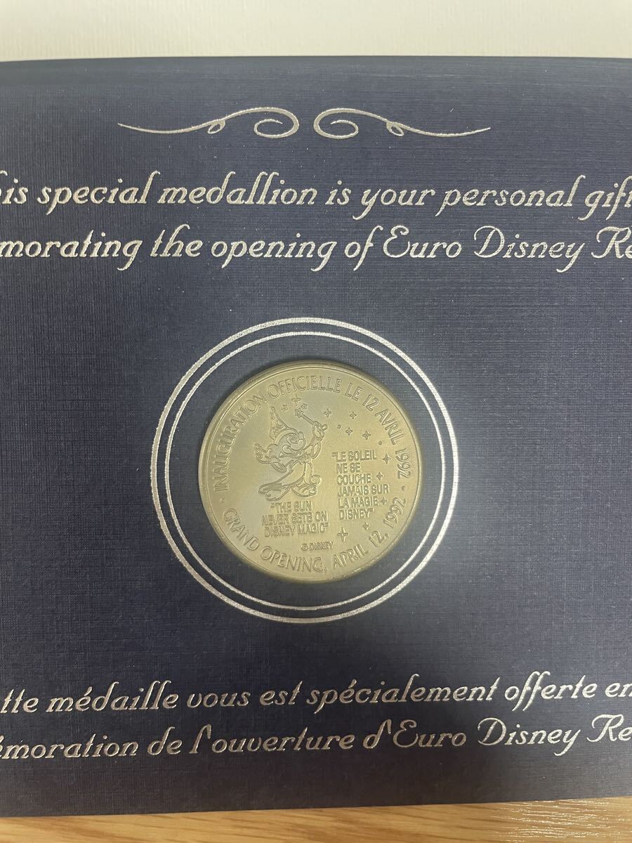 ユーロ ディズニー リゾート オープニング 記念 キャスト 限定 配布 メダル メッセージ 外袋付です。