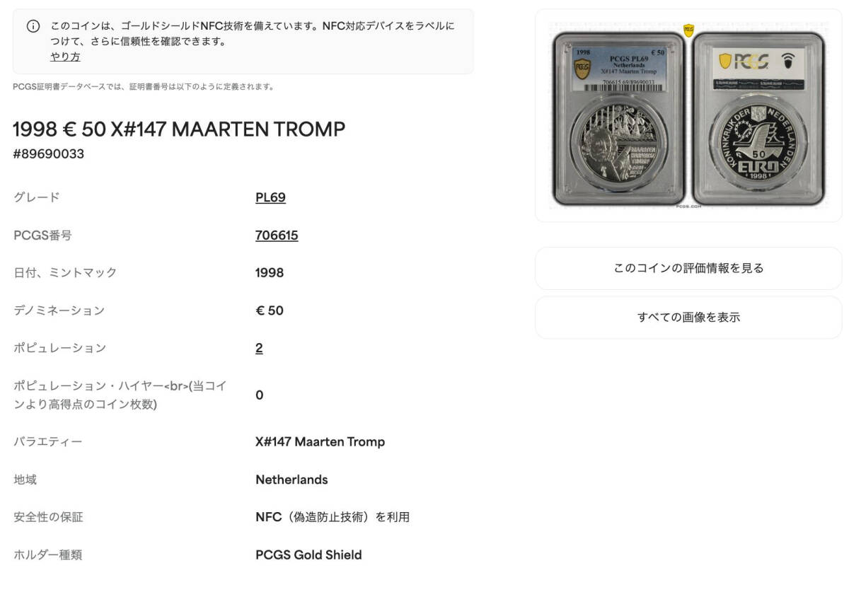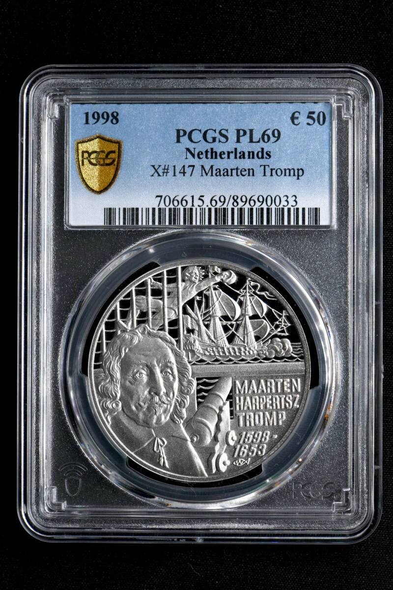 ★日終 【PCGS PL69】1998 オランダ 50ユーロ銀貨 マールテン・トロンプ 完全未使用 プルーフ//世界コイン 古銭 貨幣【決済期限火曜日】