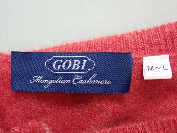 | GOBI ゴビのカシミヤセーターです。モンゴル製、とても上品な印象ですね。素敵にお使い頂けると思います。気になる方は是非ご検討下さい。 | |