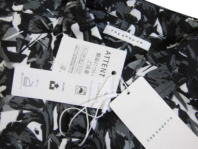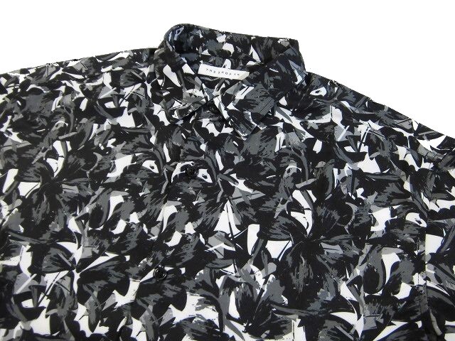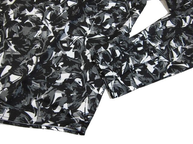 K土11196新品▼薄手素材 タケオキクチ THE SHOP TK プリント 長袖シャツ 【 L 】 総柄デザイン シャツ ドライポリ素材 吸水速乾 黒系