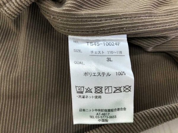 サイズは3Lで着丈80cm、身幅64cm、袖丈62cm です。