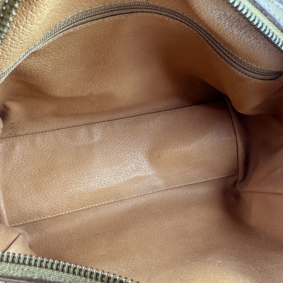 | ■商品状態 | 【外・レザー】薄汚れ、スレ 【外・角、フチ】スレ 【外・ハンドル-ストラップ】薄汚れ、スレ 【金具部分】小キズ、退色 【内側】薄汚れ、スレ | ||