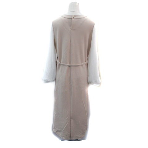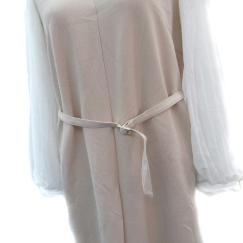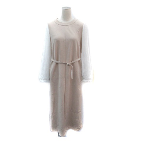 グローブ grove ワンピース ロング丈 長袖 プリーツ 切替 ベルト付き S ベージュ 白 ホワイト /SM35 レディース