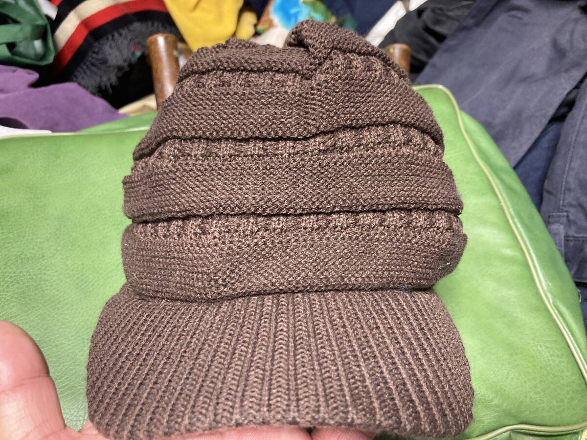 2510ビームスハートBEAMS HEARTツバ付き織り ボーダー柄アクリル ニットCAPキャップ帽子ブラウン茶BROWNワッチJEEPジープ ビーニー
