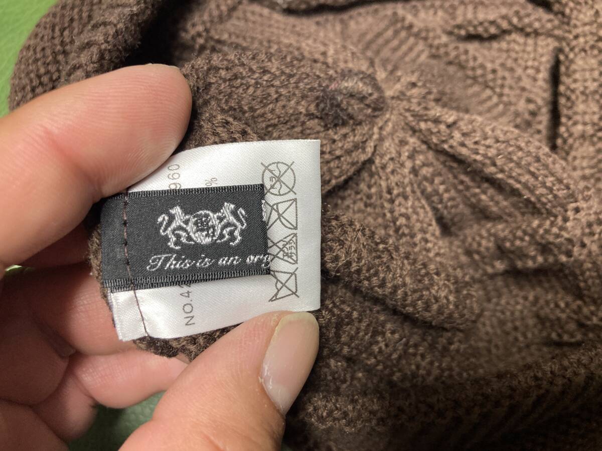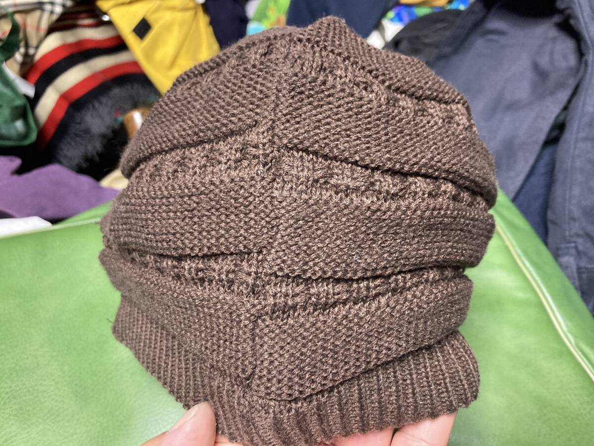 基本は縦方向に編まれており、ボーダー状に独特の編みが入っております。