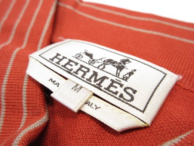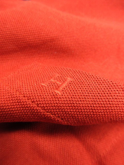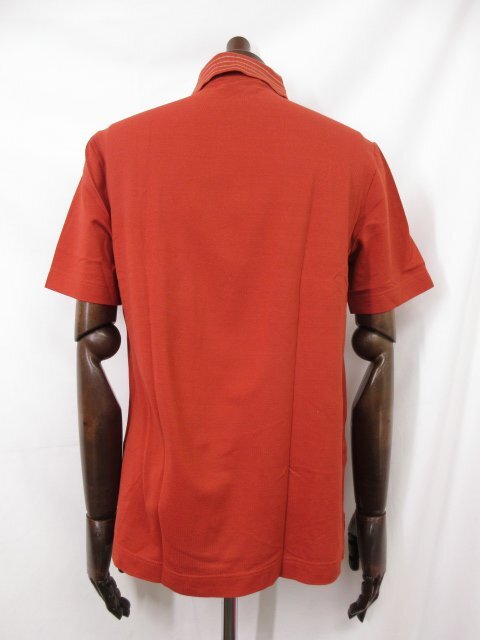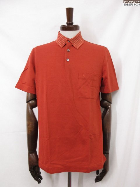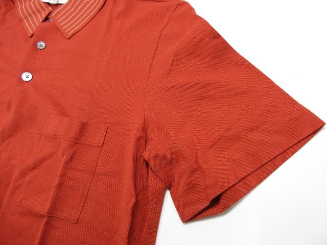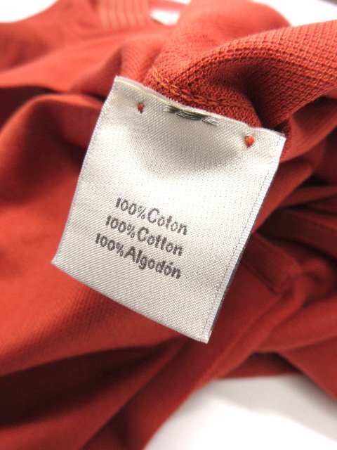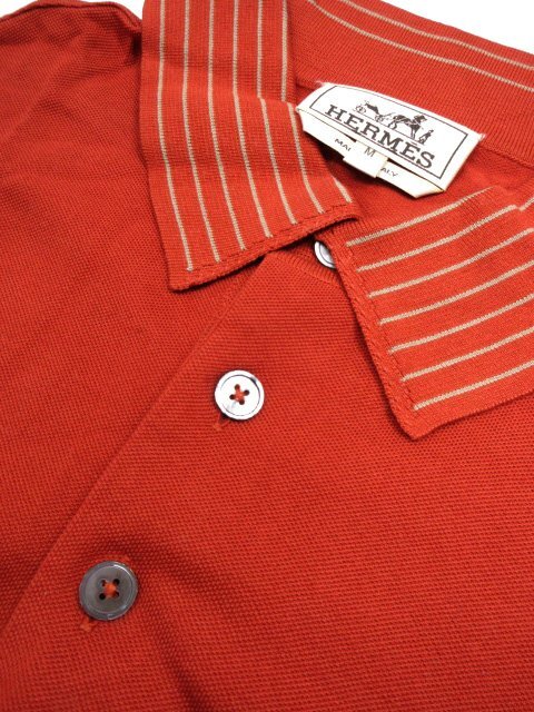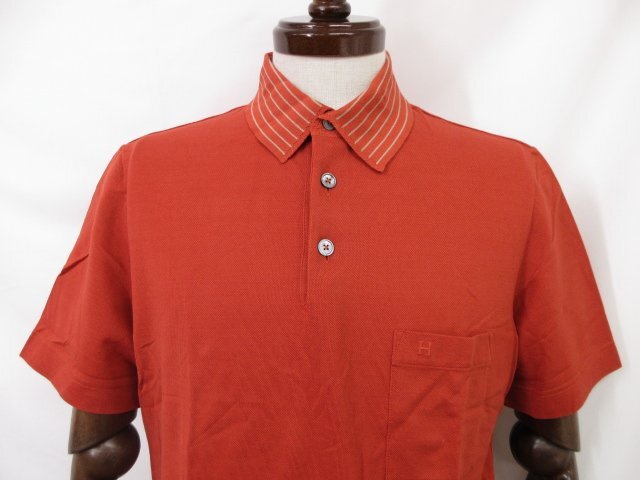 美品【エルメス HERMES】 コットン100% 刺繍 鹿の子生地 半袖ポロシャツ (メンズ) sizeM 濃いめのオレンジ系 イタリア製 ◇33MT6454◇