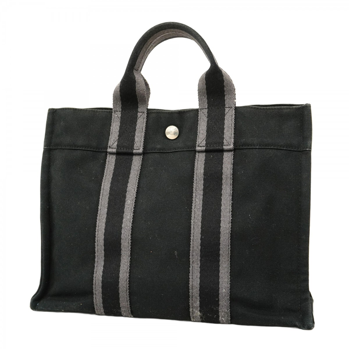 【5me5369】エルメス トートバッグ フールトゥPM キャンバス ブラック シルバー金具【中古】レディース