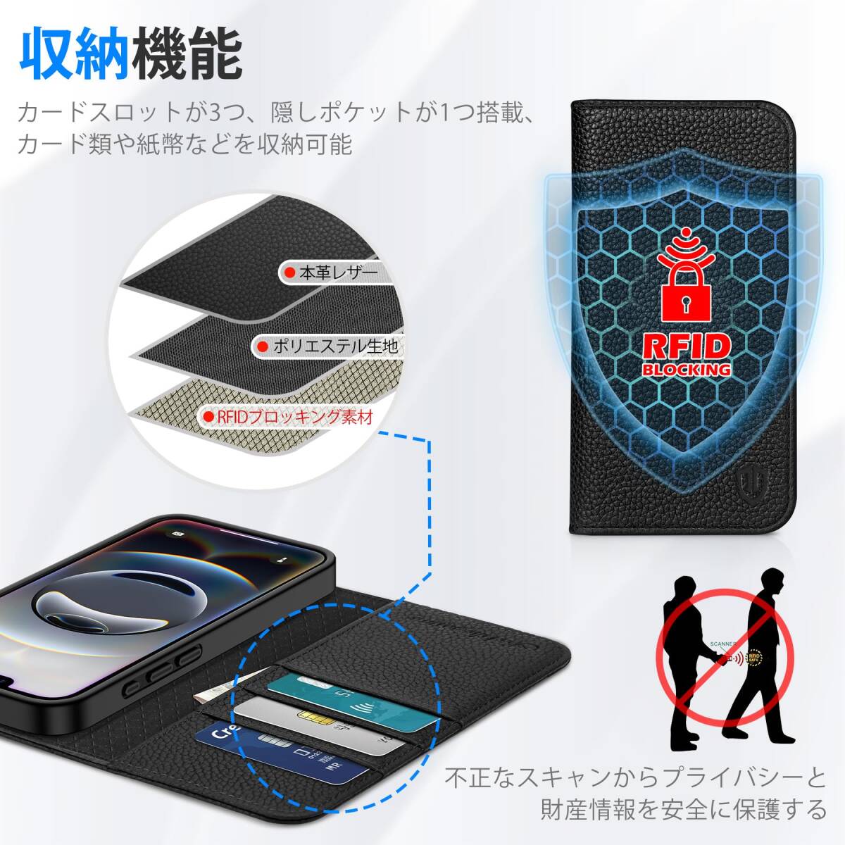 【カード収納・RFIDブロッキング技術採用】カードなどを入れるポケット3つがありますが、更にお札、紙幣も収納できるポケットも装備しますので、手ぶらで外出することができ、とても快適です。本iPhone16eケースはカードスロット&ポケットの裏地につける布はRFIDブロッキングライニングを採用しています。先進的なRFIDブロッキング技術を利用して、信号をブロックして、ICカードの情報や個人情報などを安全に守ります。信号がブロックするから、カードをケースに入れたまま反応しない場合は、カードを取り出してご利用ください。