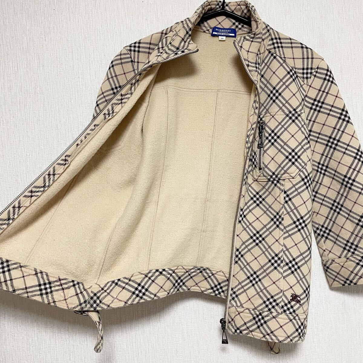 即決☆BURBERRY バーバリー ブルーレーベル ノバチェック ブルゾン ロゴ 刺繍 ホース ジップ 38 M コットン