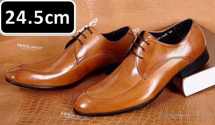 メンズ ビジネス レザー シューズ 本革 紐 ブラウン サイズ 24.5cm 革靴 靴 カジュアル 屈曲性 通勤 軽量 新品 【apa-164】