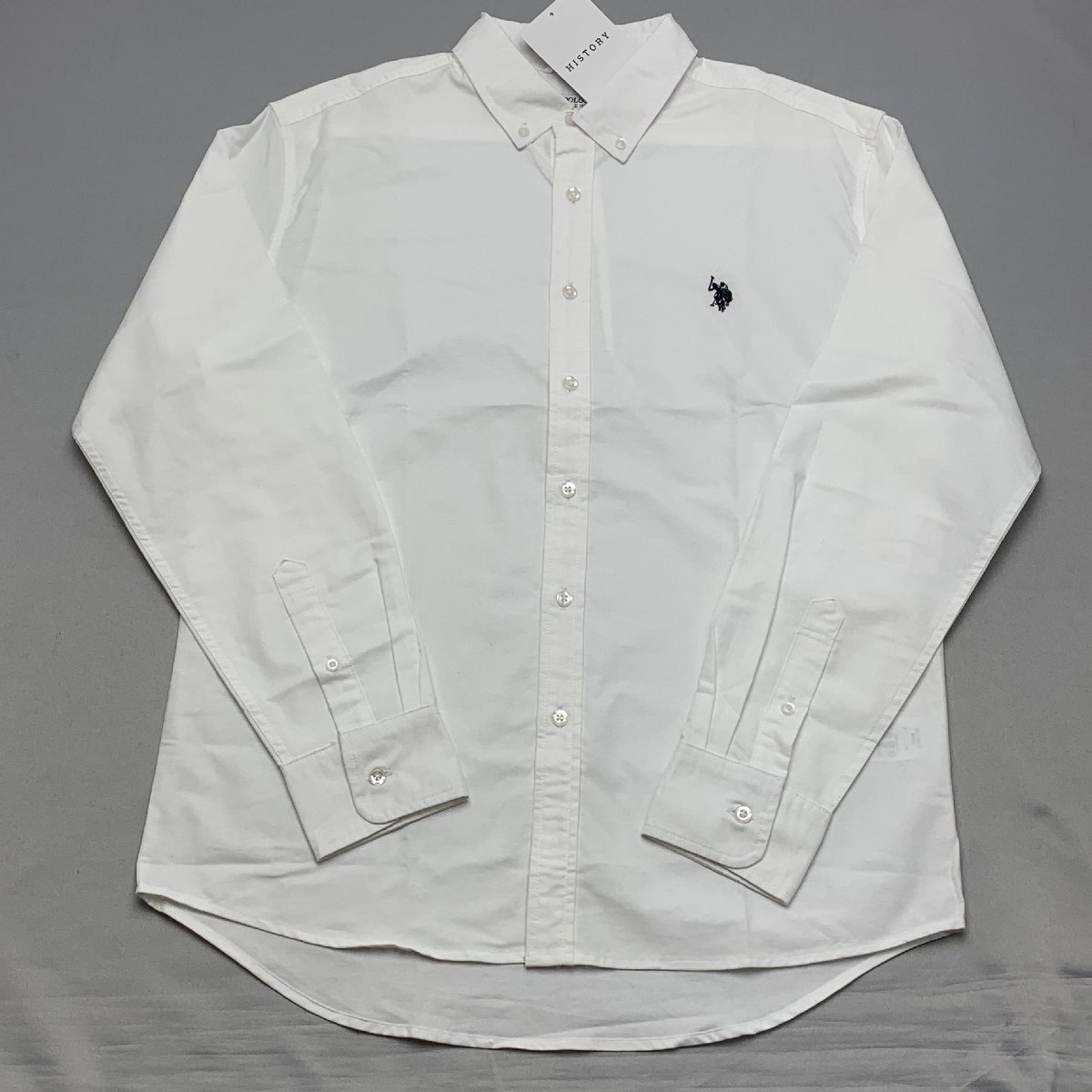 【送料無料】【新品】US.POLO.ASSN メンズ長袖コットンシャツ(ボタンダウン仕様)  M  アイボリー★53700