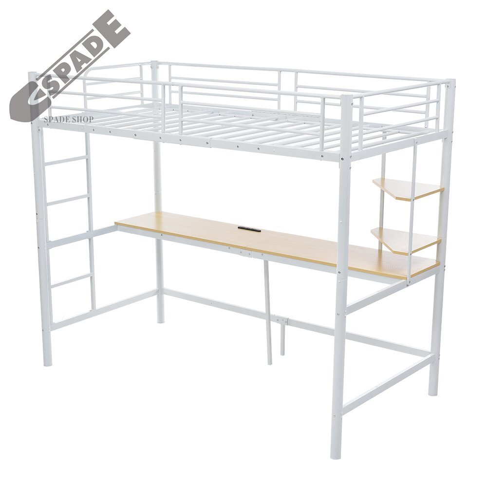 【国内発送】システムベット 宮棚 ロフトベッド シングル コンセント付き デスク付き 収納付き ラック棚付き 北欧風 二段ベッド耐震