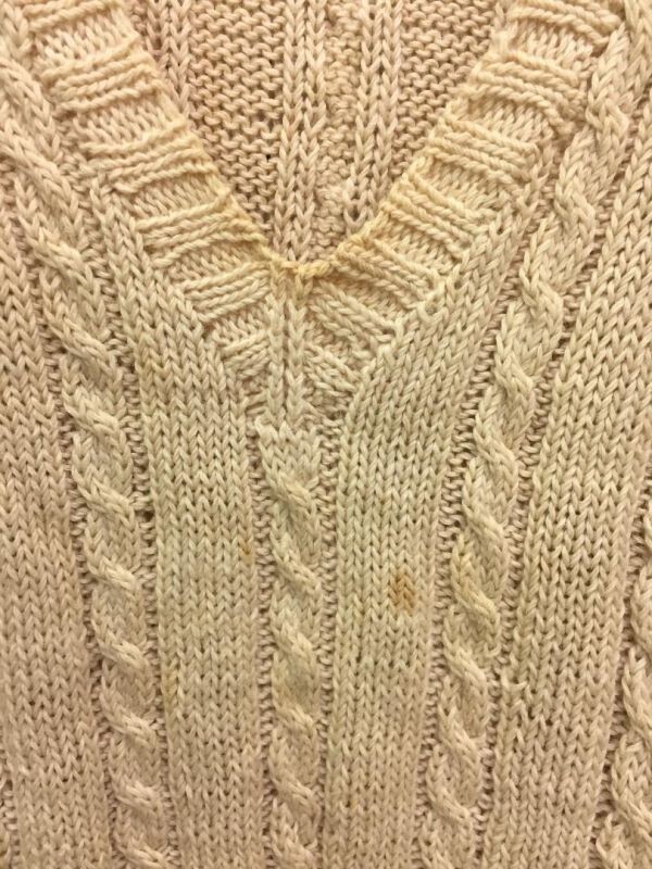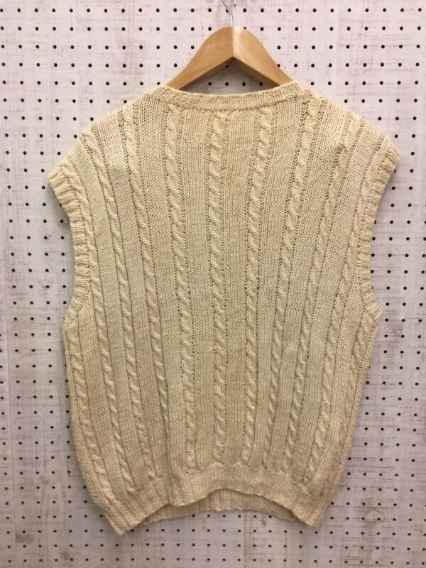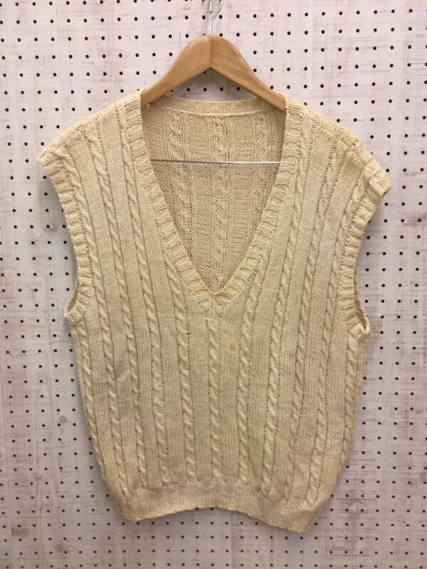 オールド レトロ トラッド モード ストリート 古着 ケーブル編み 深めVネック ニット ベスト 男女兼用 生成り