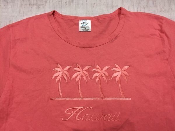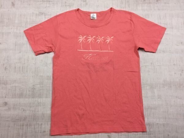 HAWAII ハワイ ヤシの木 同色刺繍 スーベニア オールド古着 ビンテージ メキシコ製 半袖Tシャツ トップス レディース M ピンクです。