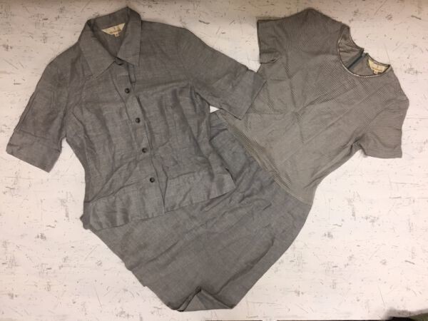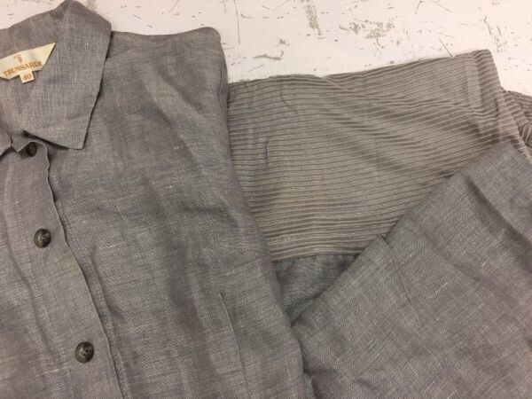 トラサルディ TRUSSARDI レトロ エレガント ワンピース 半袖シャツ アンサンブル 2点セット まとめて レディース 麻混合 40 ライトグレー です。
