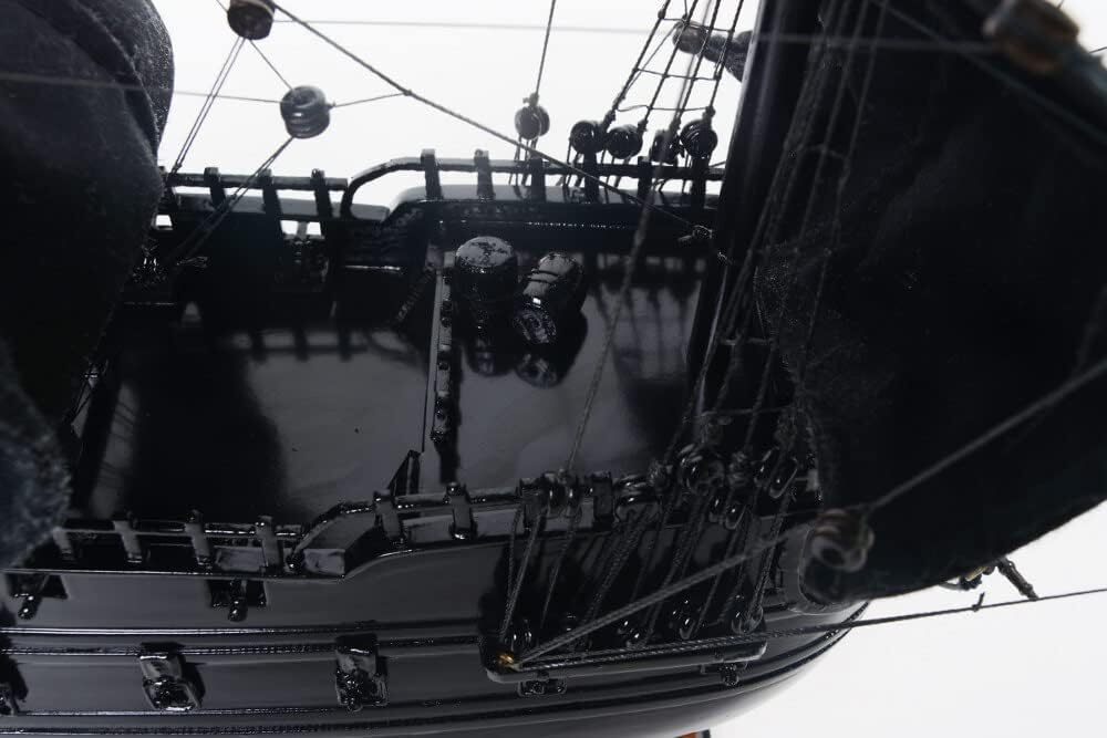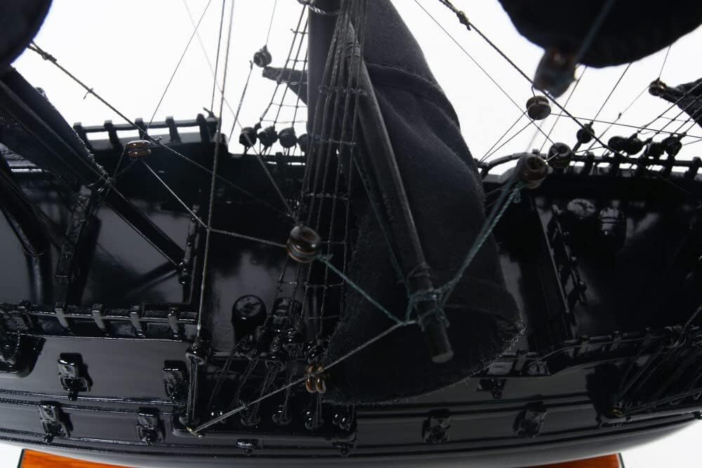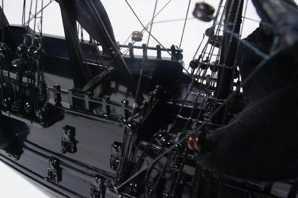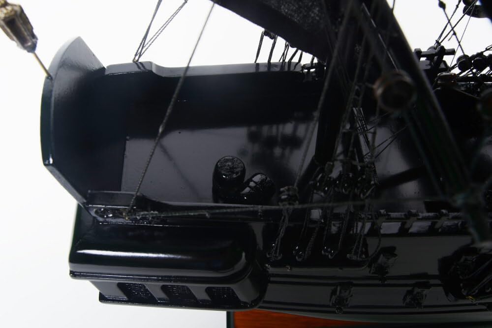職人によるハンドメイドで、細部に至るまで精巧に再現された逸品。リギングや砲門、船尾の装飾など、迫力あるディテールはまさに圧巻です。