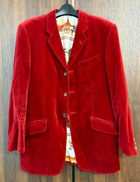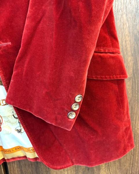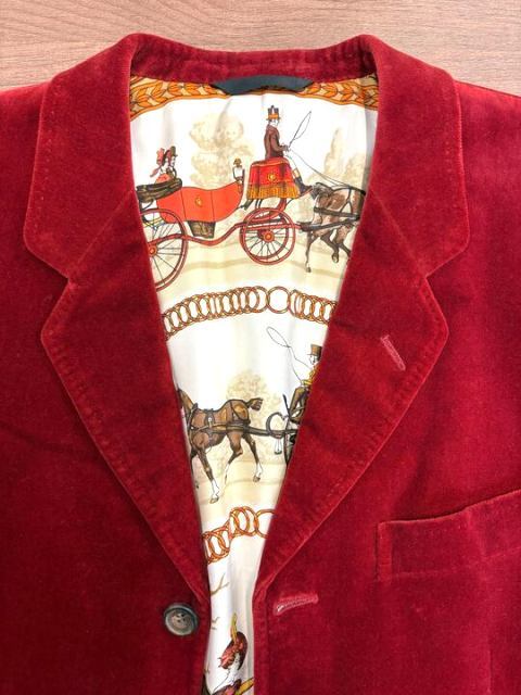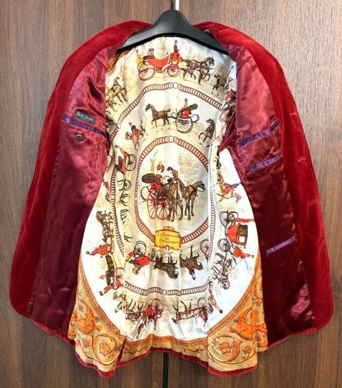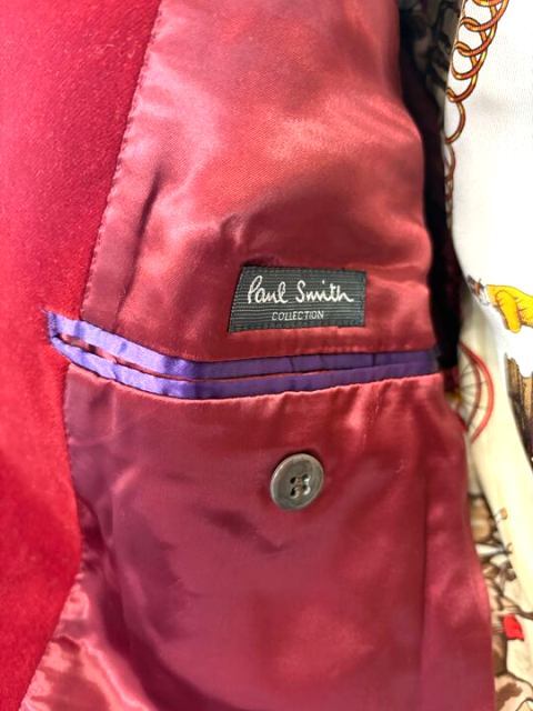 !K103832:ポールスミス コレクション PaulSmith テーラードジャケット ベルベット ベロア 馬車総柄 赤 スカーフ柄 メンズ L 中古