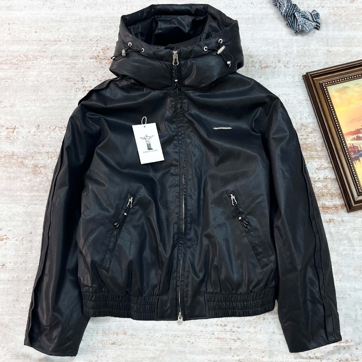 マットなレザー調の表面が上品さを際立たせ、羽織るだけでコーディネートをグッと引き締めます。無駄を削ぎ落としたシンプルな無地デザインで、どんなスタイルにもマッチ。ショート丈でスタイルアップ効果も抜群です。