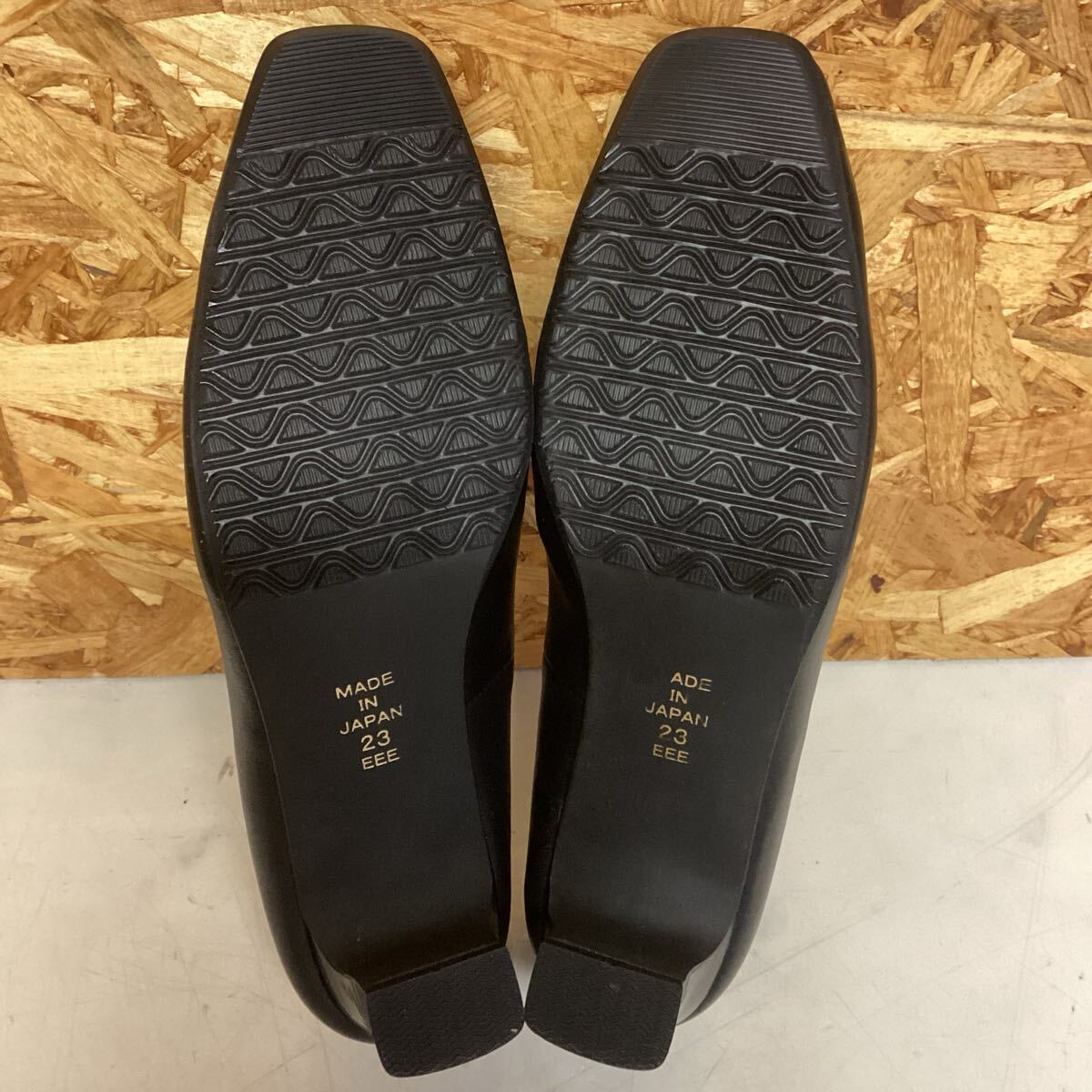 B-THREE レディース スクエアトゥ パンプス 23㎝ ブラック (ま43)