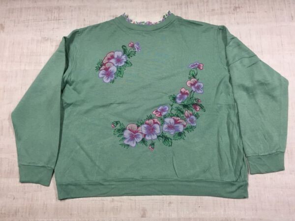 レトロ オールド カントリー フォークロア アメカジ 古着 90s 可愛い お花 刺繍 スウェットトレーナー レディース レイヤード 緑