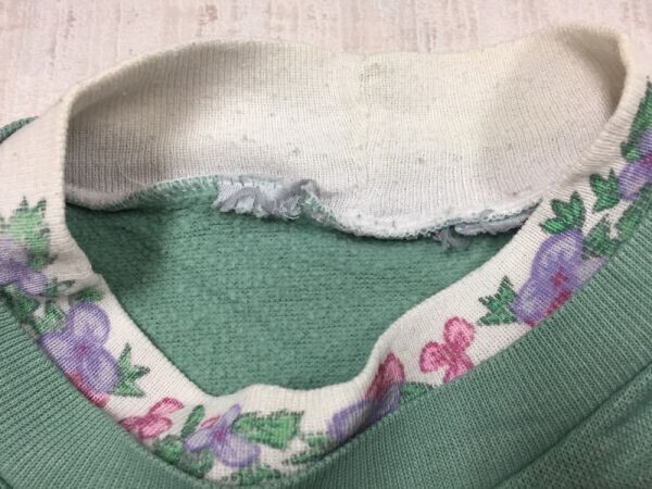 レトロ オールド カントリー フォークロア アメカジ 古着 90s 可愛い お花 刺繍 スウェットトレーナー レディース レイヤード 緑 です。