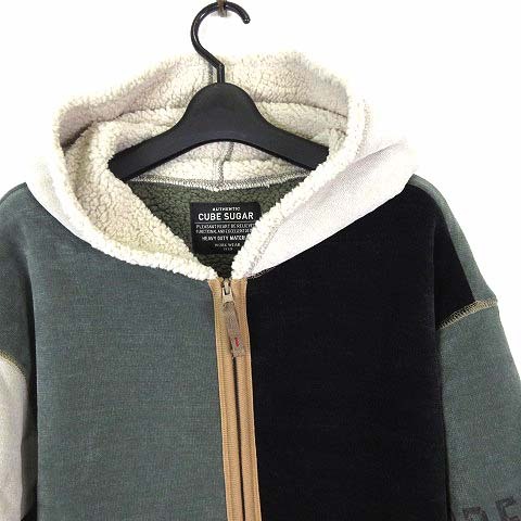 キューブシュガー CUBE SUGAR 24AW 裏ボア ベロア ジップパーカー コート アウター フード M カーキ 紺 ライトグレー 美品