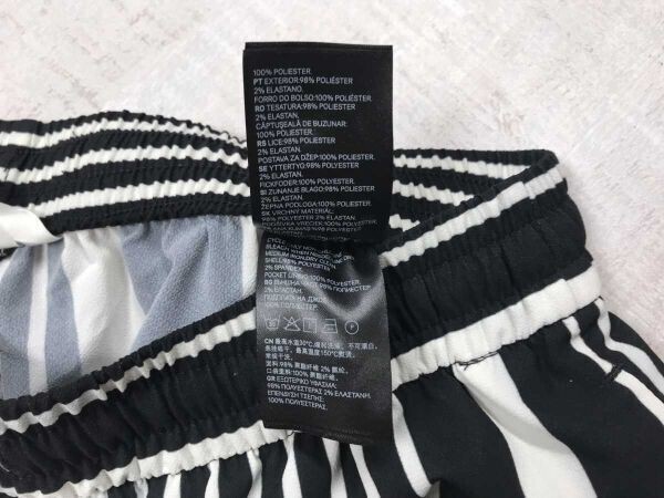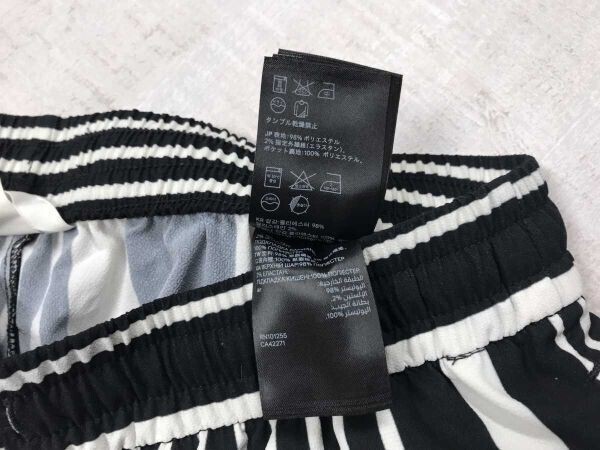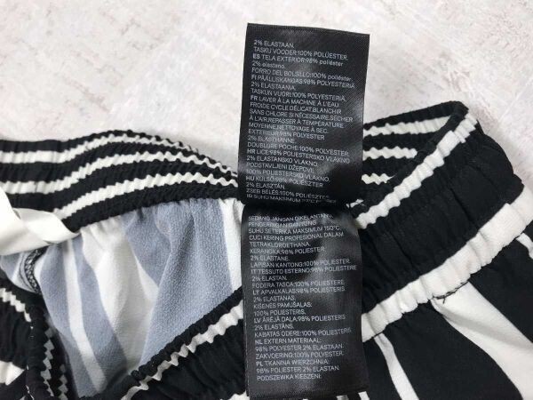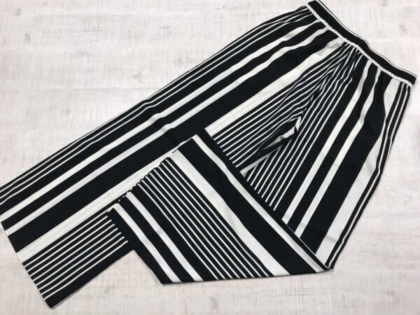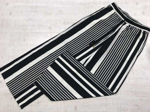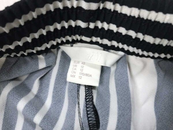 H&M エイチアンドエム リラックス イージー モード カジュアル ストライプ柄 ワイド パンツ ボトムス レディース ドローコード付き 42 黒白です。