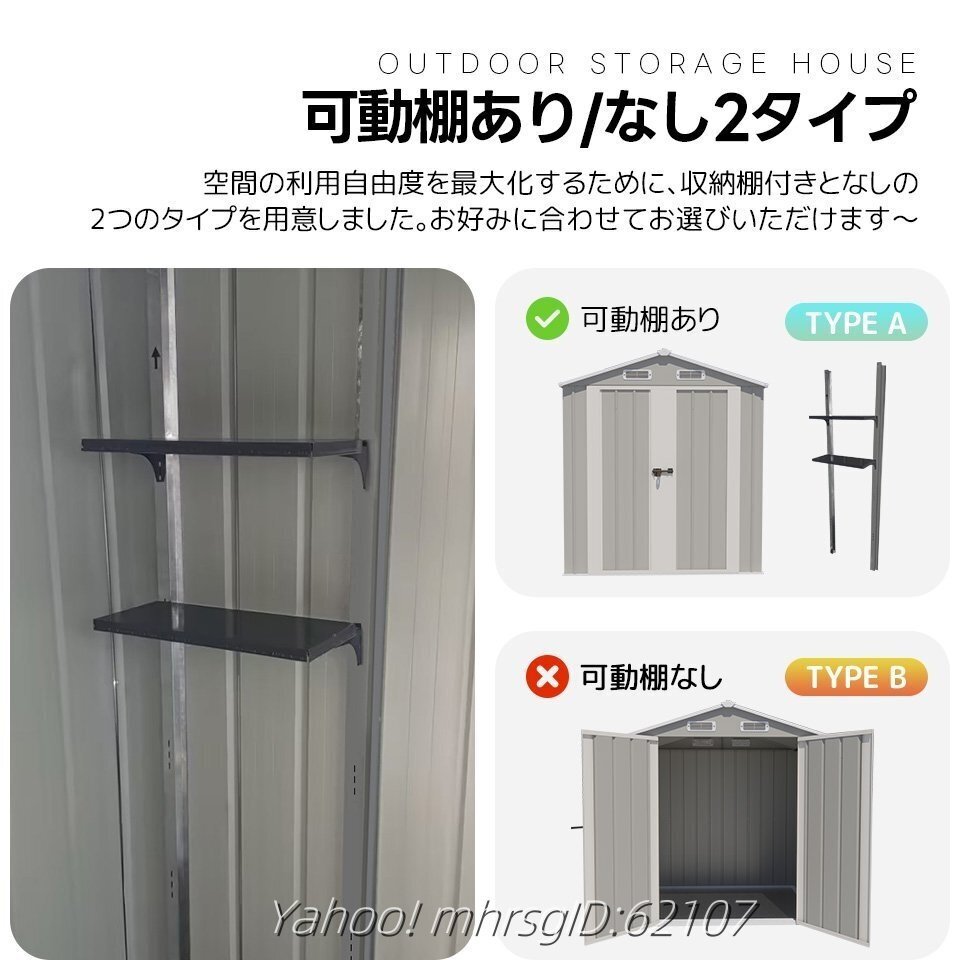 • ◎06排水に役立つ人字形屋根 屋根には本体より大きめの人字形屋根を採用し、雨水が溜まらず、傾斜と排水溝を通じてスムーズに排水されます。これにより、内部への浸水を防ぎ、大切な収納物を安全に保護します。屋根の耐荷重:80KG ご注意:完全な防水仕様ではありませんので、事前に防水処理を行うことをお勧めします。