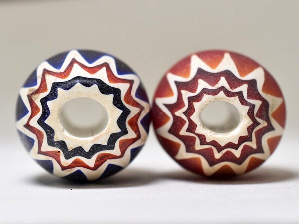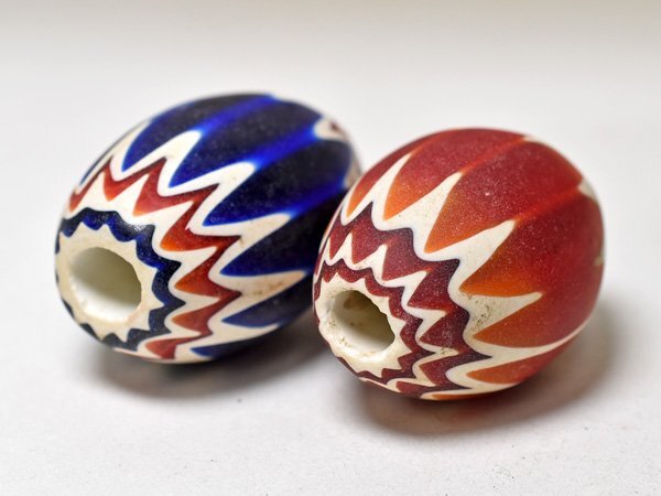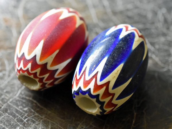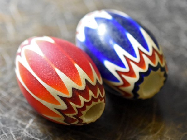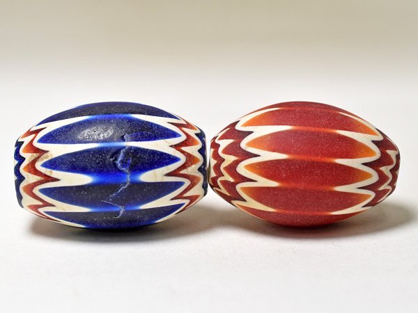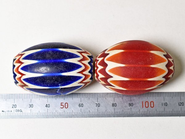 圧巻のサイズ! 大きな赤と青の6層シェブロン玉2個セット | |||