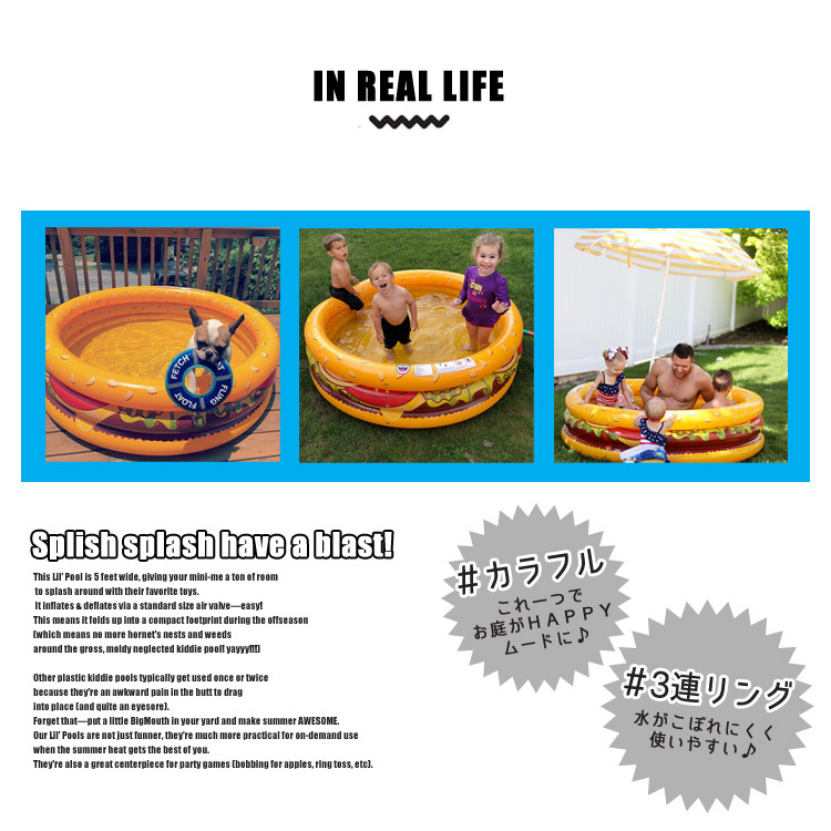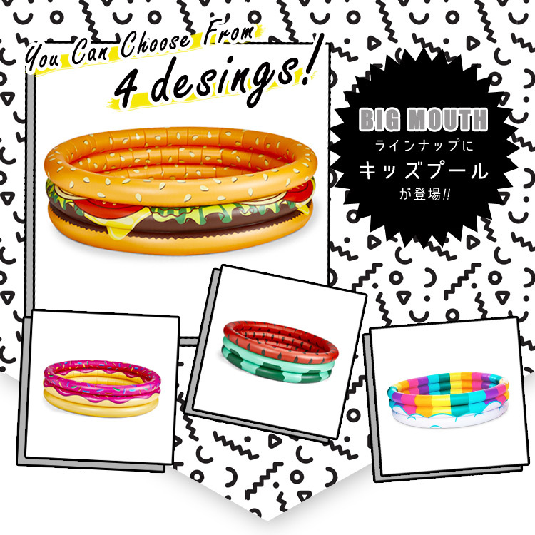 | 仕様 | 海外セレブ愛用の「BIGMOUTH ビッグ マウス」より キッズサイズのカラフル3リングプール。 FacebookやInstagramなどSNSで話題沸騰! CUTEなデザインでキッズもHAPPYに! |