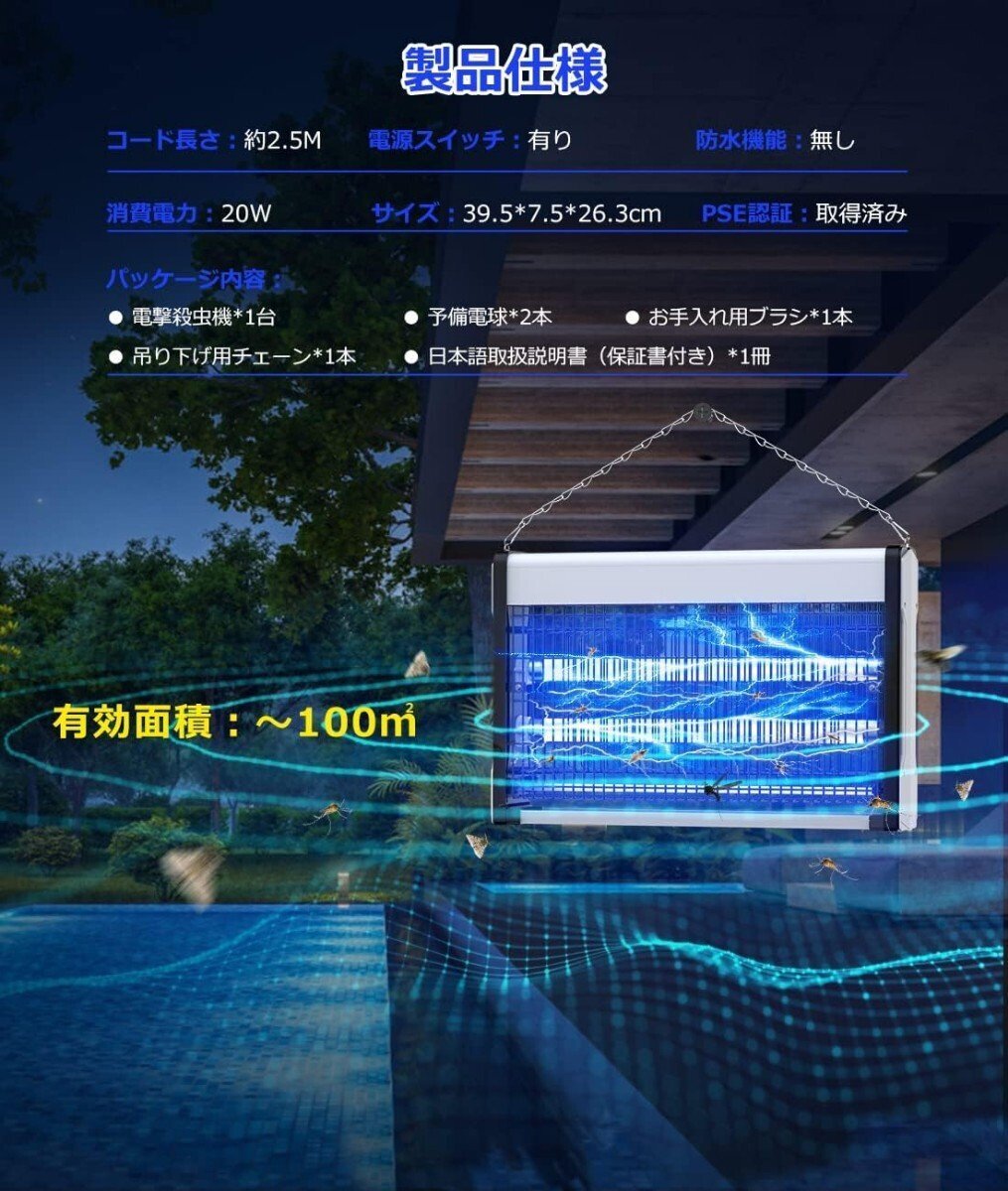 【2024年強化版 蚊虫瞬時撃退!】 電撃殺虫器 Sunnila 虫 ライト 駆除 電撃殺虫機 電気 蚊取り器 UV光源吸引式捕虫器 20W 強力電撃殺虫灯 コバエ取り 蚊取り ハイパワー電撃 蚊虫瞬間撃退 誘蛾灯 虫退治 虫除け ハエ取り こばえとり 大型 軒下吊下型 360°強力虫取り 静音 省エネ 薬剤不要 据え置き/吊り下げ両用 PSE認証取得済み MH20W