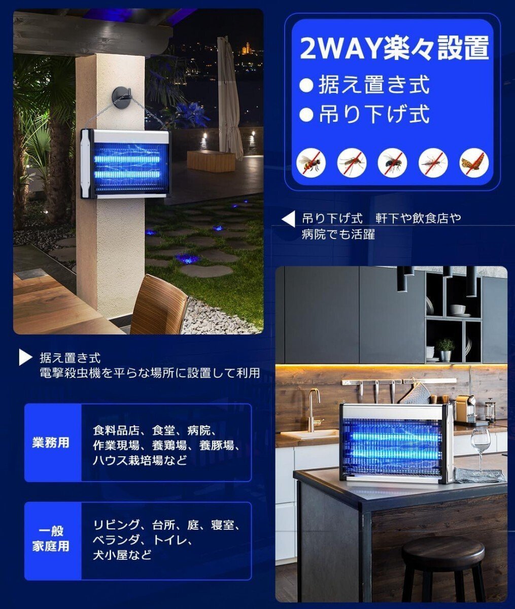 様々な場所に適用、プロの飲食店でも使われている、本格仕様の電撃殺虫器!小さなお子様と犬・猫などのペットがいるご家庭でも安心してお使いいただけます。