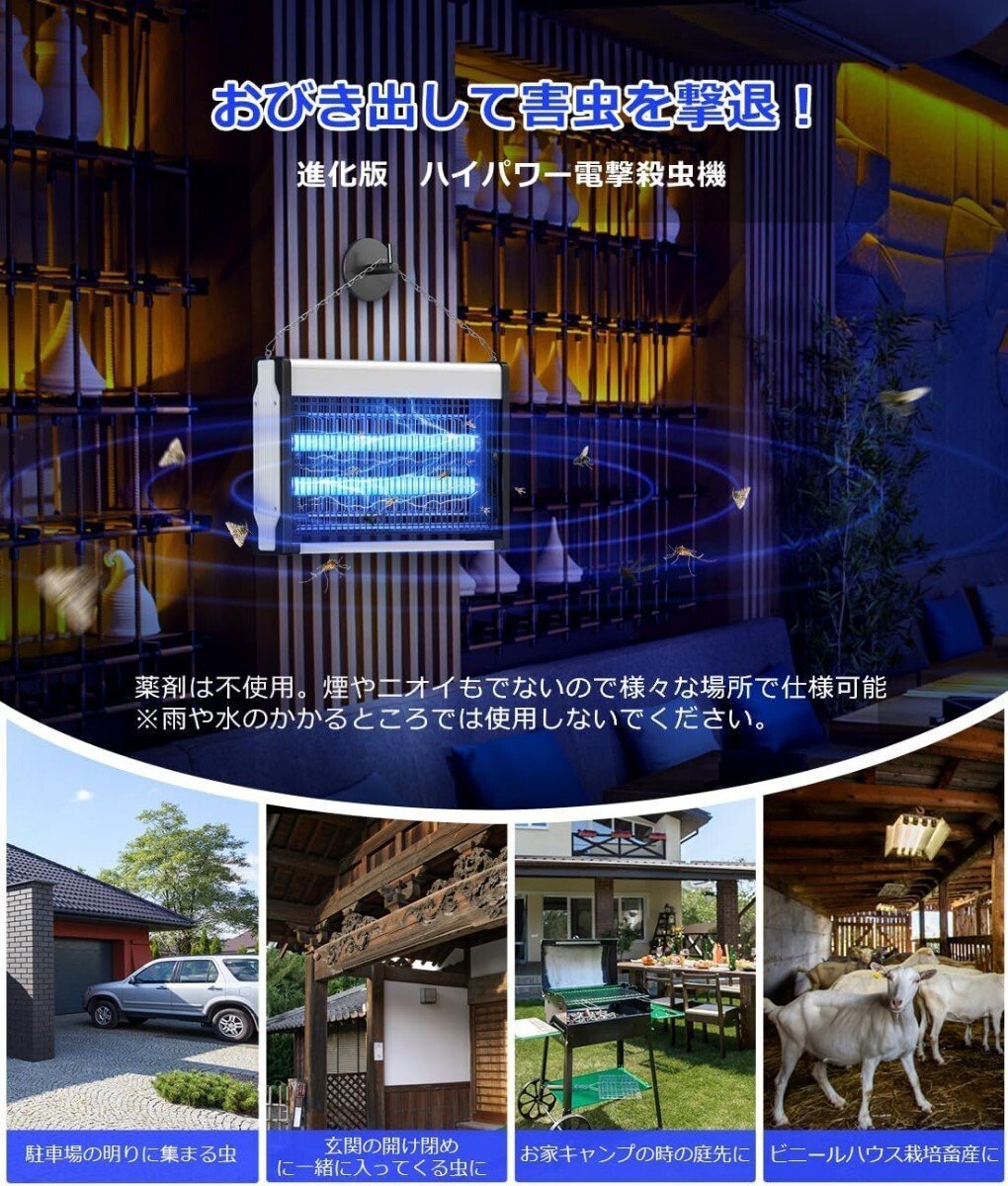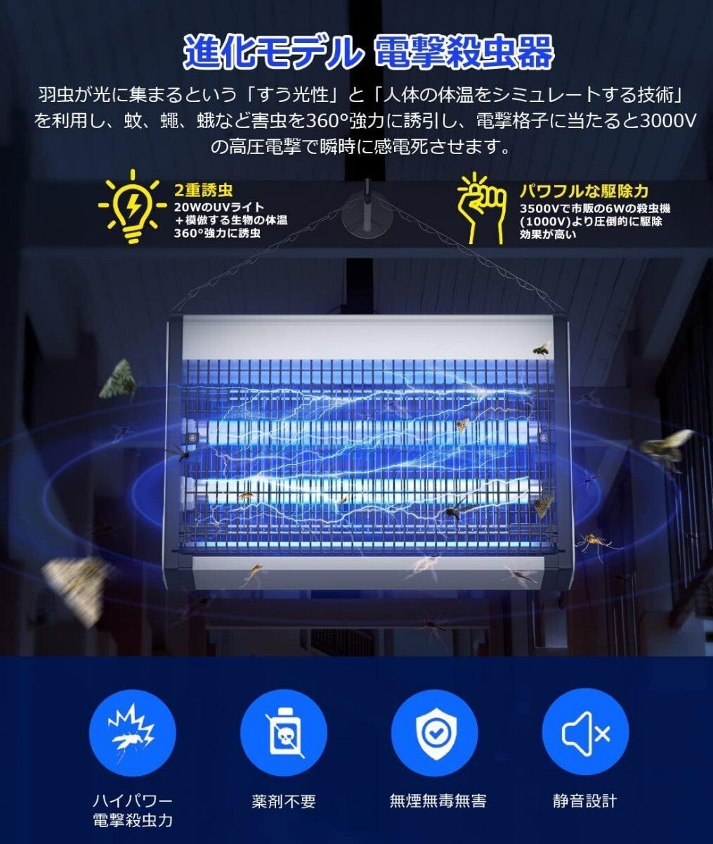 【2024年進化版強力電撃殺虫器】羽虫が光に集まるという「すう光性」と「生物体温を模倣する技術」を利用し、作成されたおびき寄せるタイプの強力電撃殺虫器です。