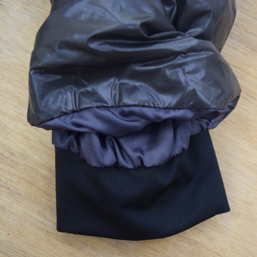 艶感あるナイロンのバイカラ―とボリューム感あるダウンがインパクトあるブルゾン。