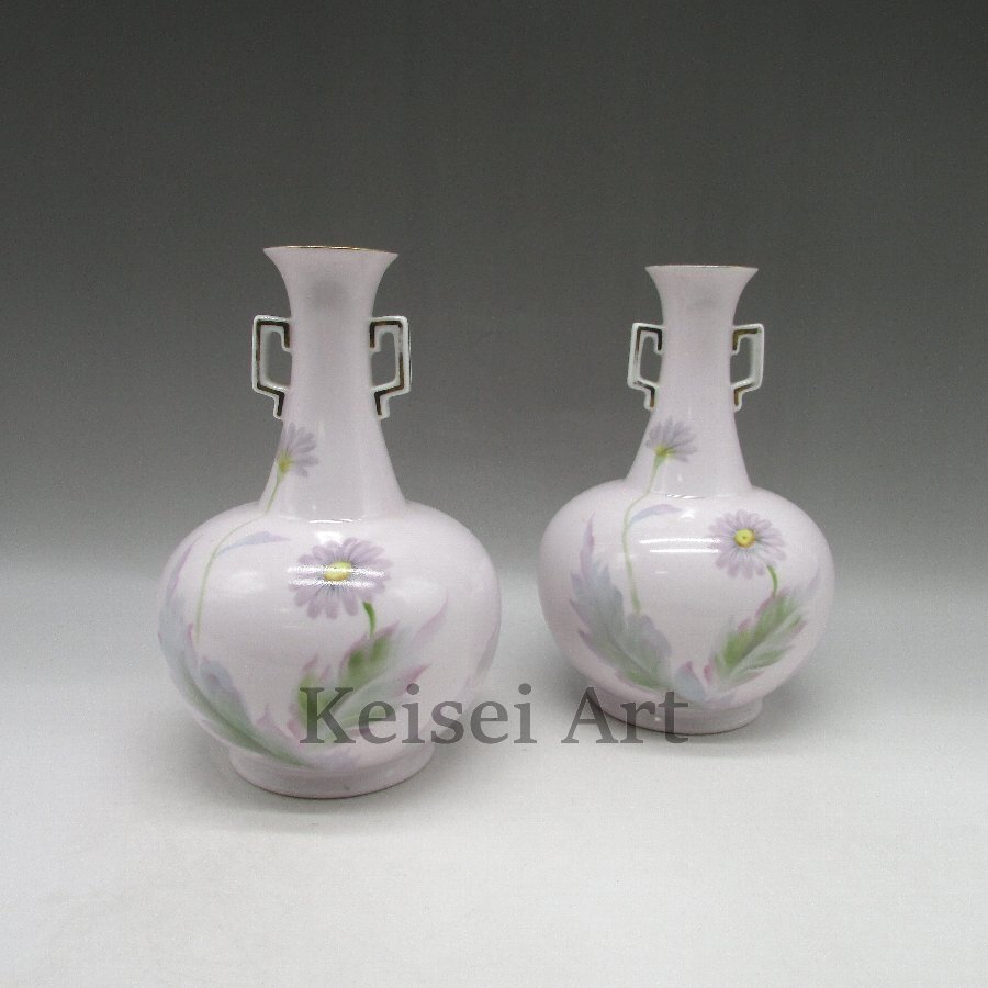 名称 : オールドノリタケ マーガレット花文ピンク地花瓶一対