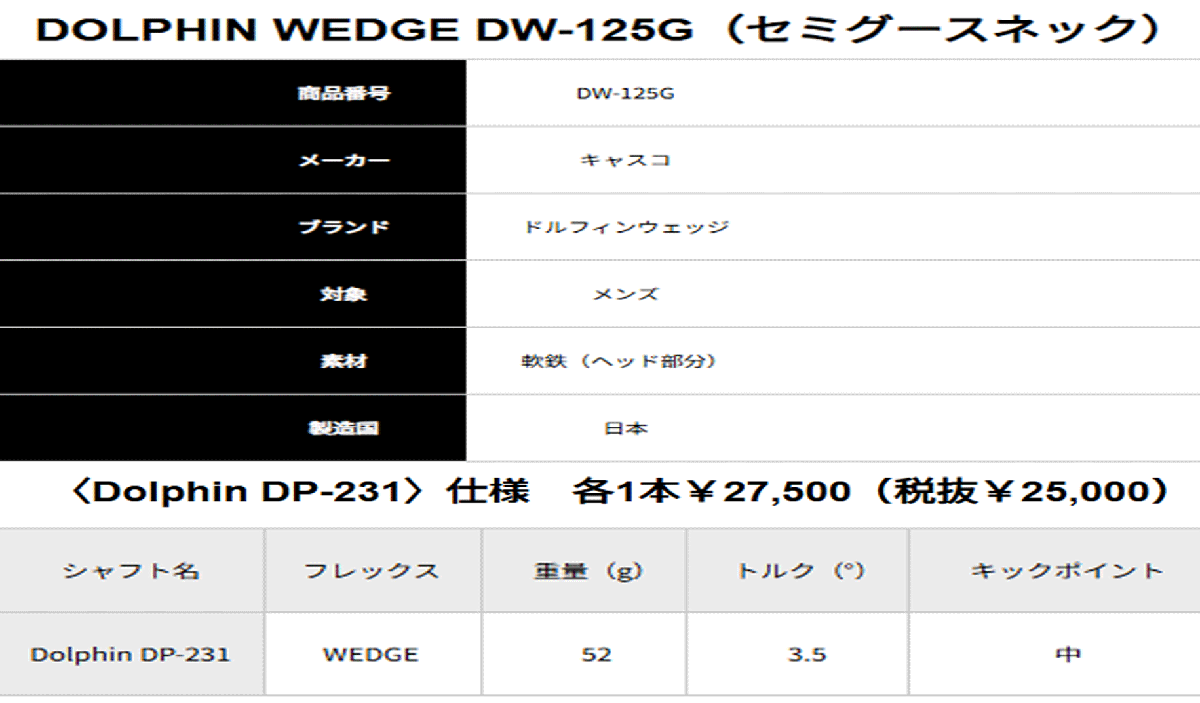 新品■2025.2■キャスコ■ドルフィン ウェッジ■DW-125G■サテン■ウエッジ2本■52.0/56.0■DP-231 カーボン■抜けて!激スピン!■正規品