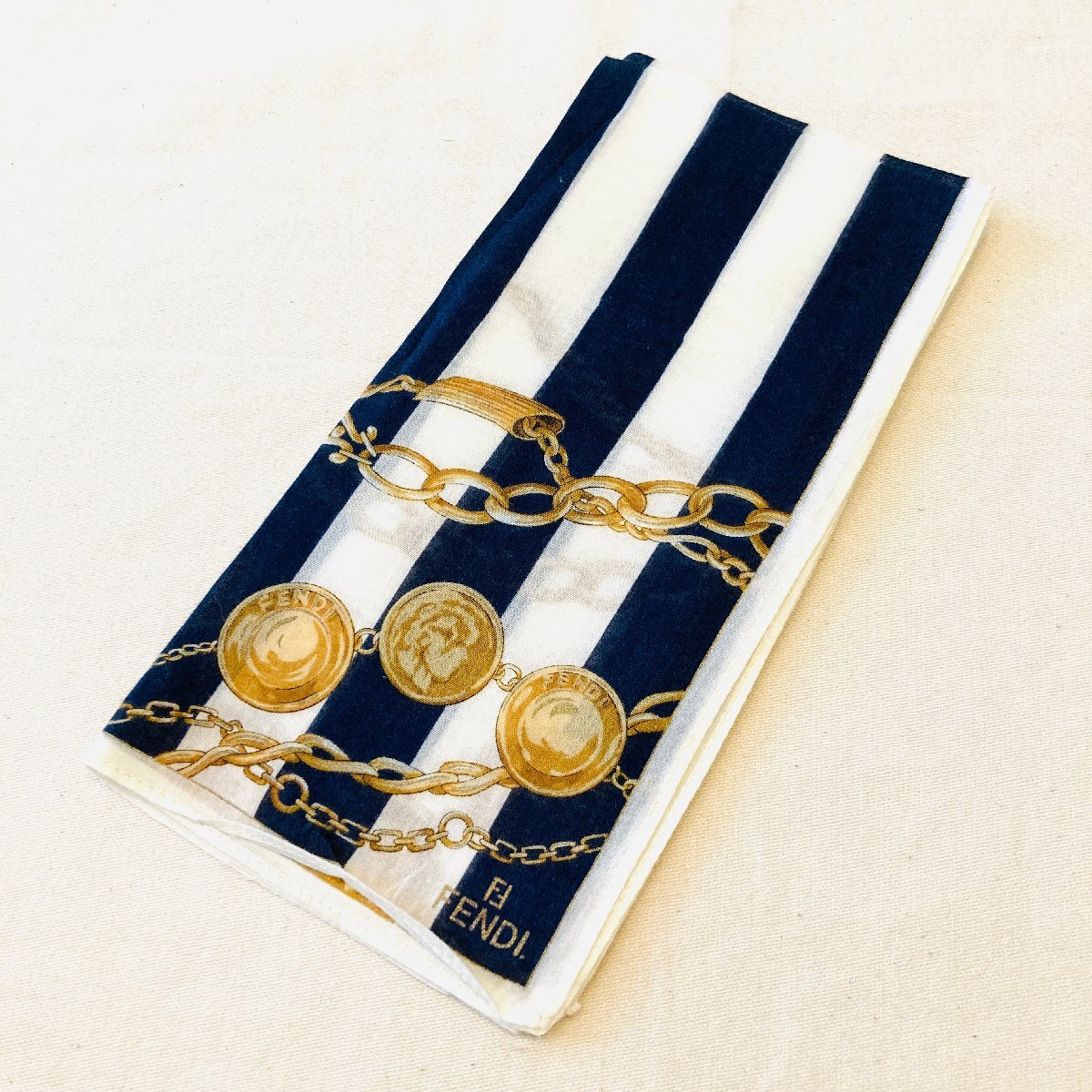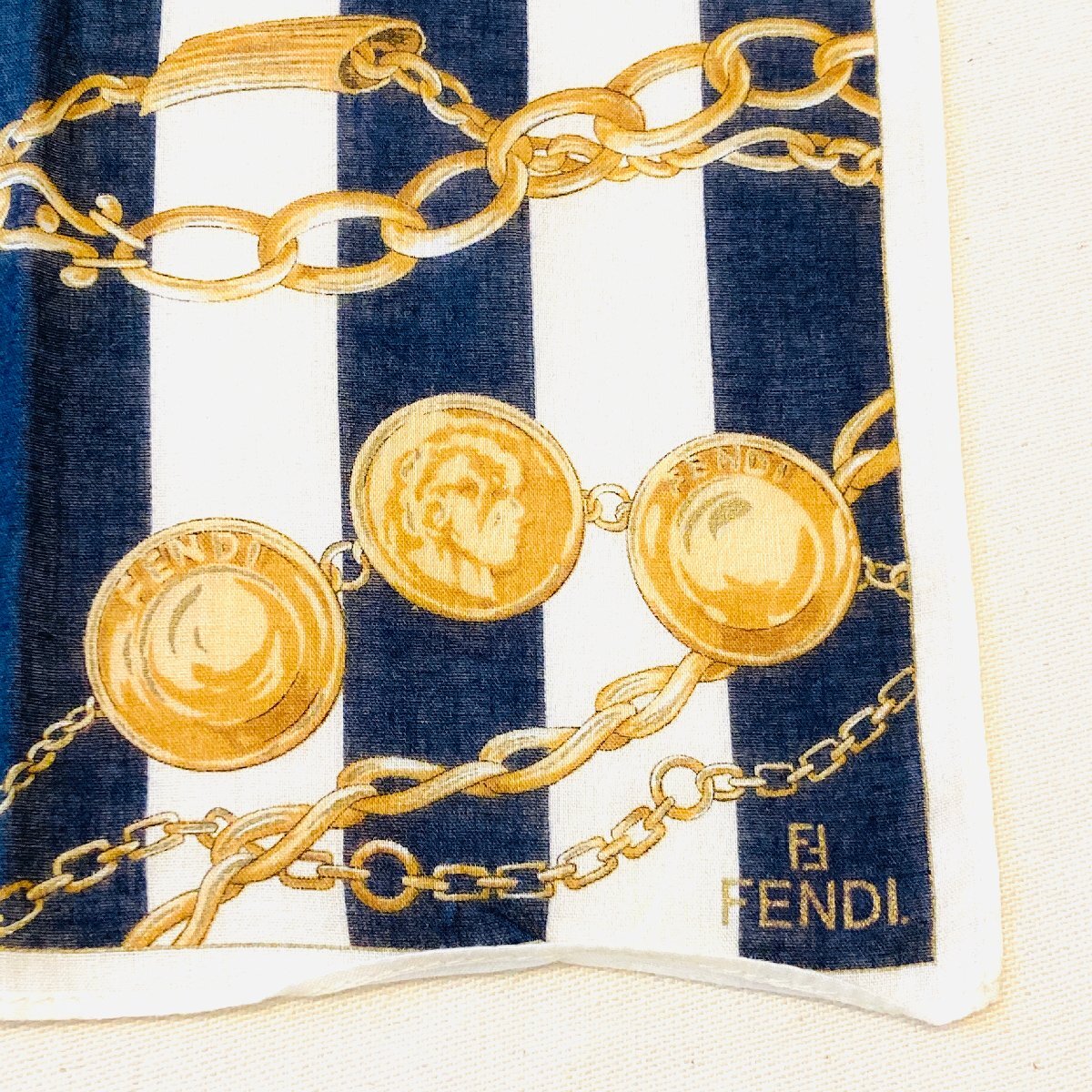 美品 FENDI フェンディ ジュエリー モチーフ デザイン スカーフ ハンカチーフ ネイビー/ホワイト系 44 × 44cm