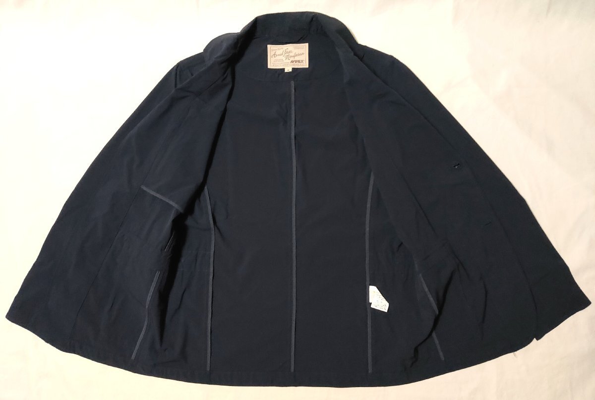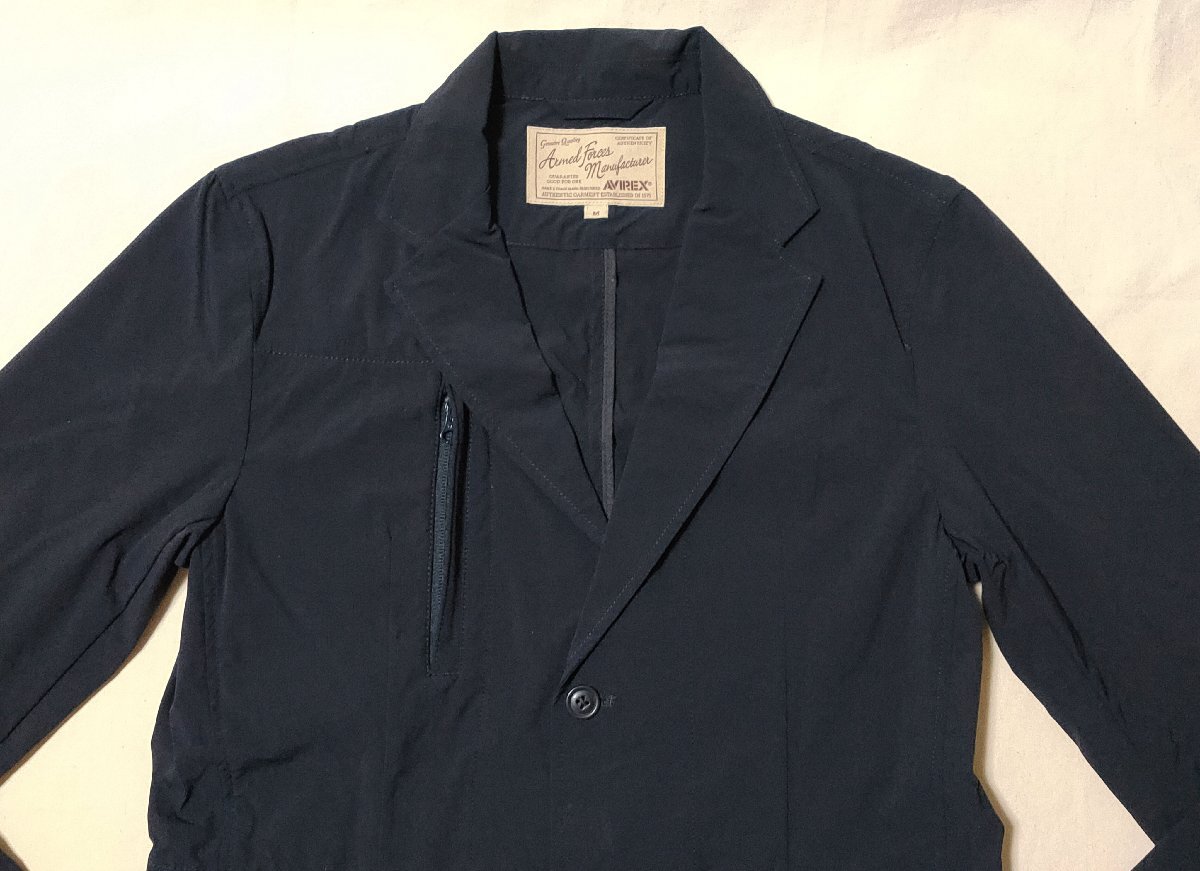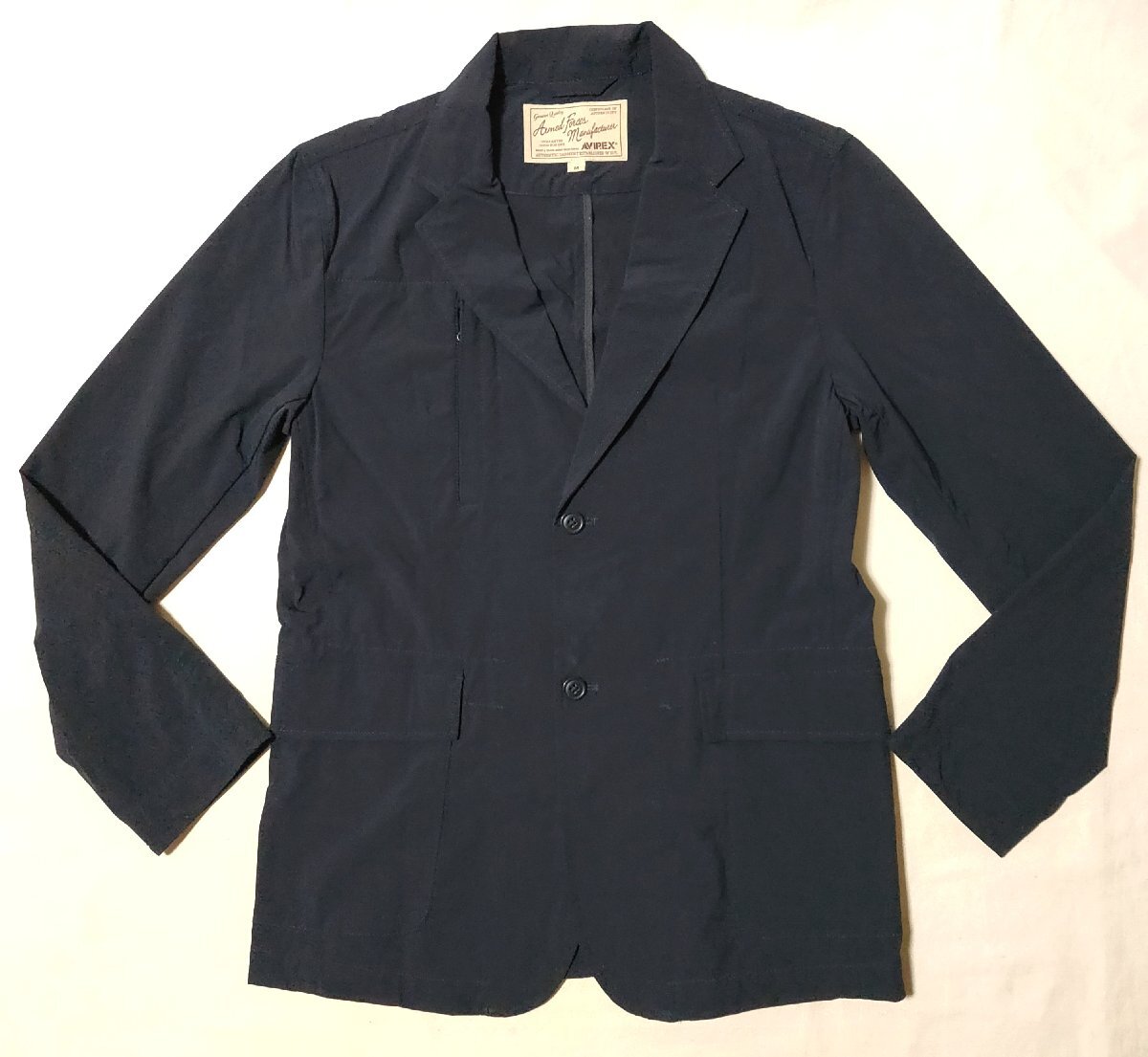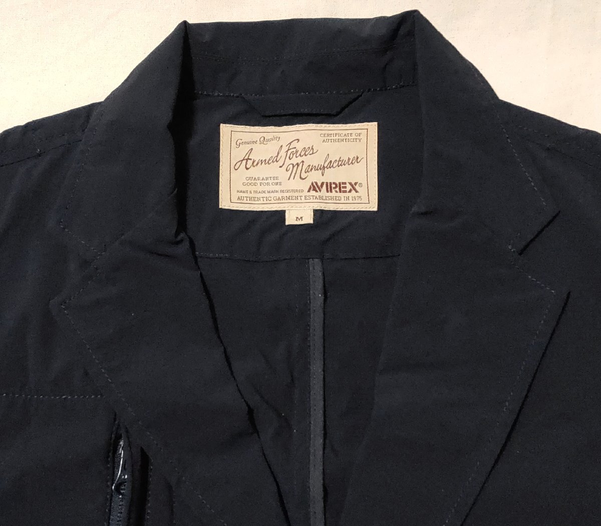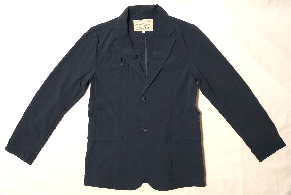 商品:美品 ★AVIREX アヴィレックス Armed Forces Manufacturer★ 軽量 ストレッチ ナイロン テーラードジャケット カジュアル sizeM 濃紺 02984