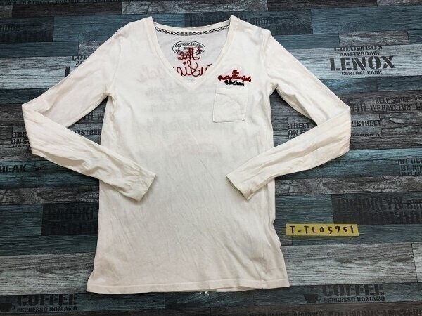 MOUSSY マウジー メンズ ロープ刺繍 Vネック ロンT 長袖Tシャツ 1 白 です。