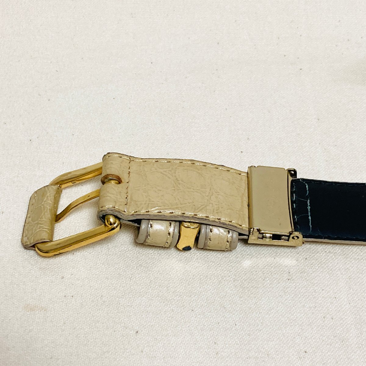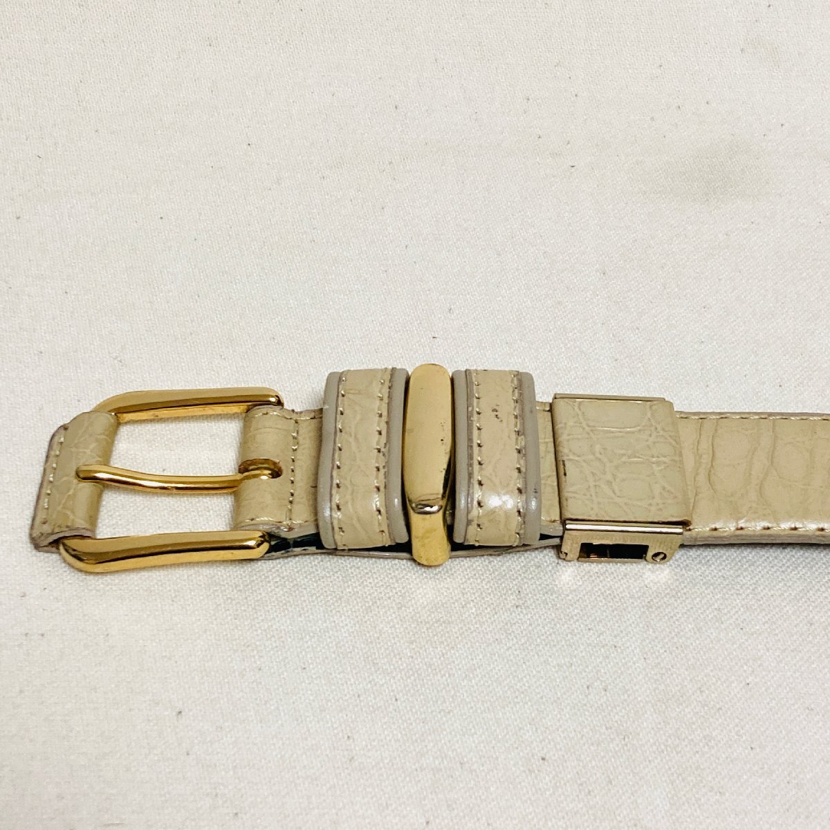 ゴールド バックル 型押し レザー ベルト アイボリー系 レディース