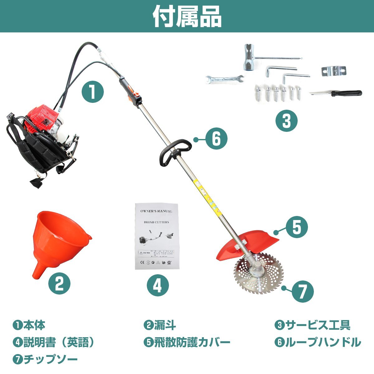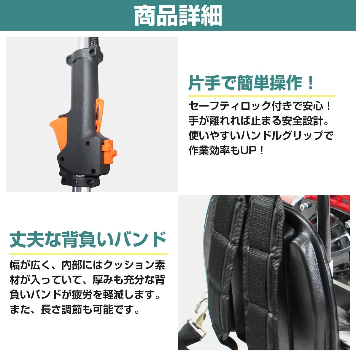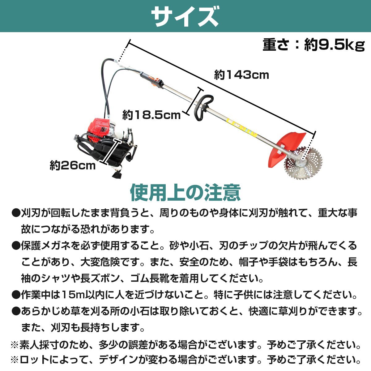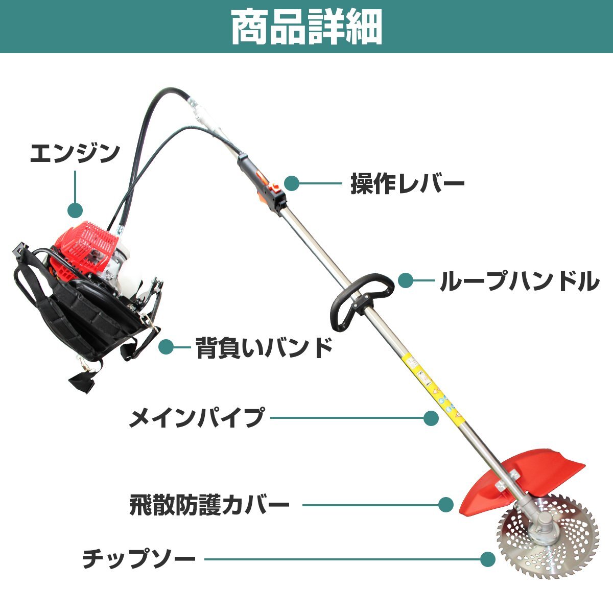 草刈り機 芝刈り機 背負い式 チップソー付 4サイクル 35cc 0.9kw 4ストローク 4スト ガソリン燃料 本体:レッド/赤