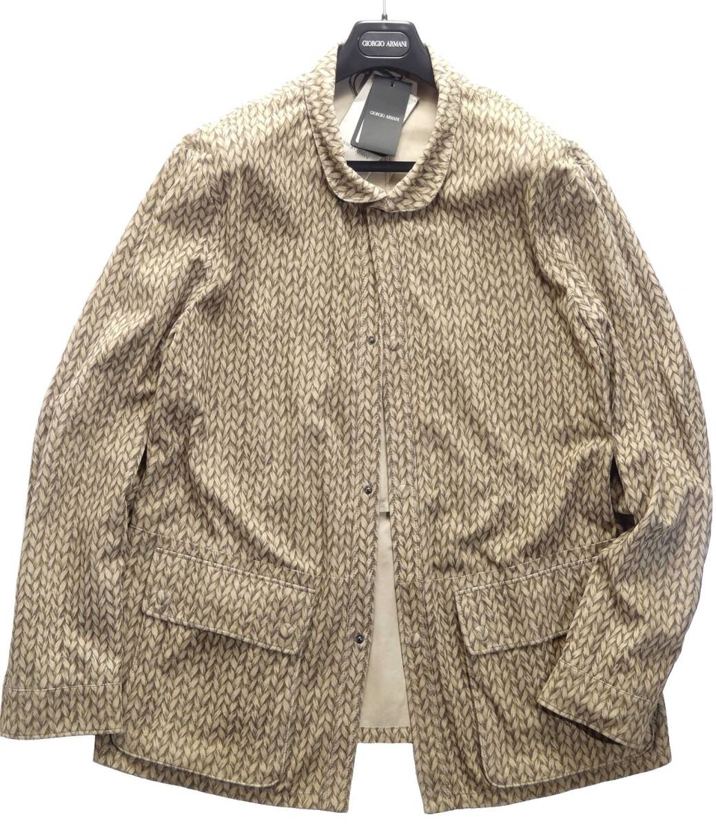 秋冬プレフォール新品1,408,000円GIORGIO ARMANIアルマーニ★圧倒的お洒落。編み柄プリントを施したブレザー丈レザーJKT【52=日本XL~XXL