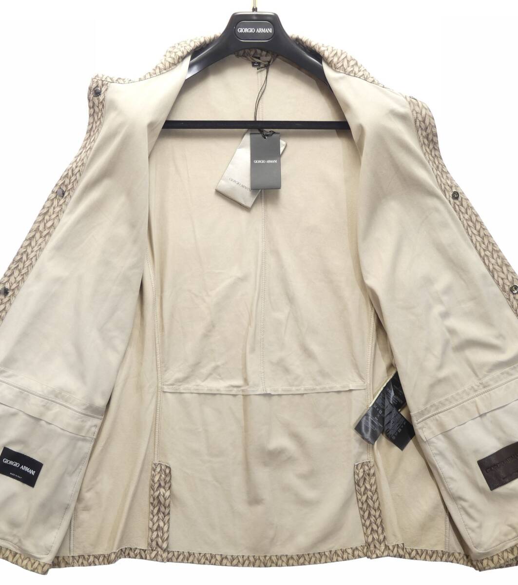 GIORGIO ARMANI/ジョルジオ・アルマーニ 圧倒的お洒落。編み柄プリントを施したブレザー丈レザージャケット アルマーニ直営店購入の正規品新品です