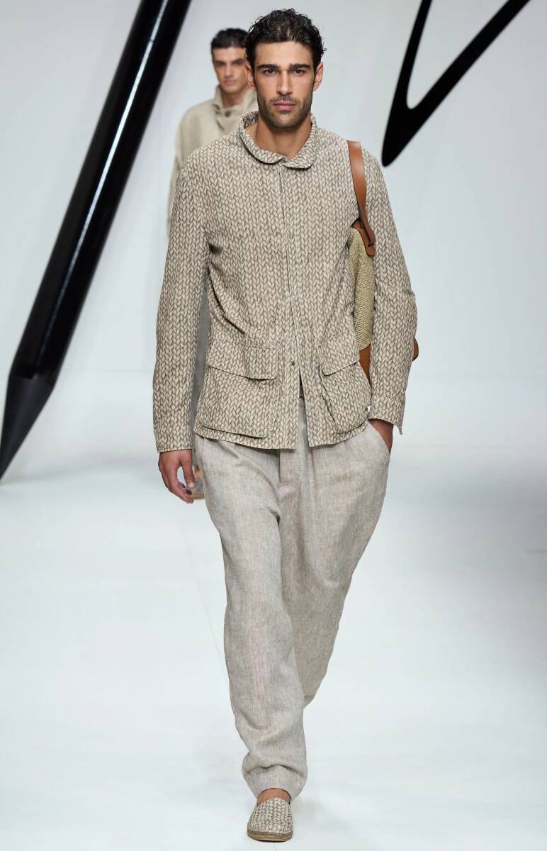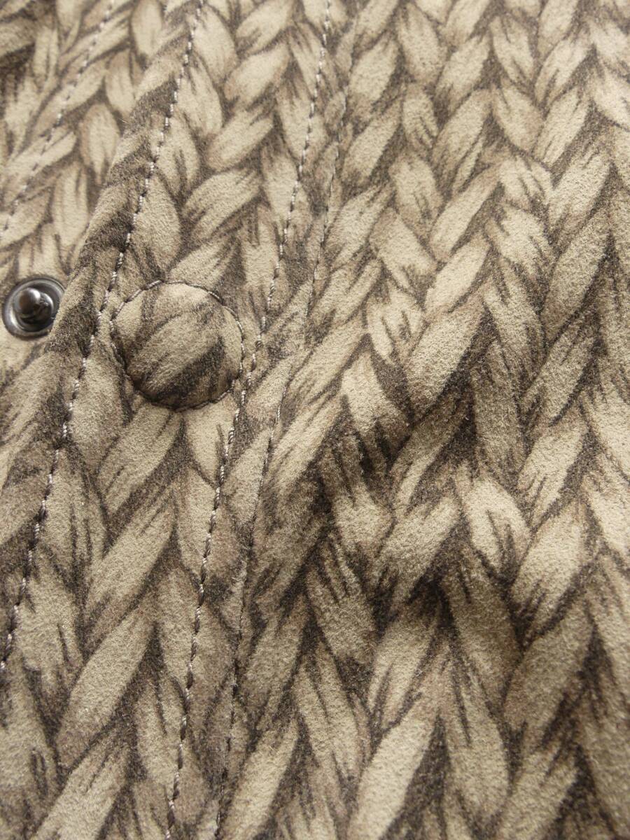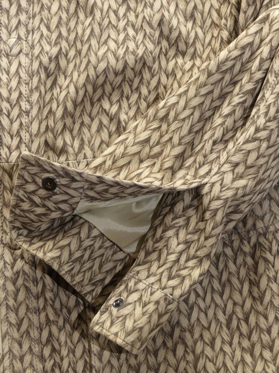 秋冬プレフォールでリリースされたジョルジオのレザーブルゾン。貴重なコレクションピース。レザーに編み柄プリントを施した非常に個性的なお品です。ランウェイ写真のとおりブレザージャケットの着丈で、スポーティー感のあるウエスト丈ブルゾンに比べ上品で大人シック。それでいて重たさが無く軽快かつ躍動感のある絶妙のバランスです。マチありフラップポケットがサファリテイストと言ったら大袈裟ですが、フィールド感がプラスされて若々しさがあります。デザインスタイルもプリント柄も隙が無くお洒落。ウール生地のように柔らかで伸縮性のある上質レザーはさすがのジョルジオレザー、比類の無い最高品質です。価格は100万円の壁を軽く突き抜けた140万円。自分の今期の仕入れの中での最高級品になると思います。着用適正時期は秋冬春3シーズンですが、保温材が施されていないシンプルな作りのためこれ自体には防寒性はさほどありません。真冬の着用には厚手のセーターが必要になります。