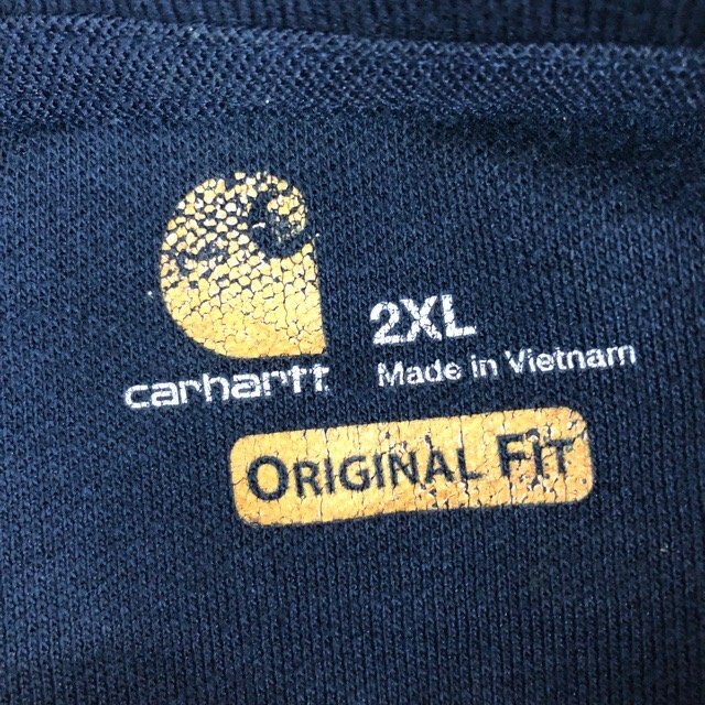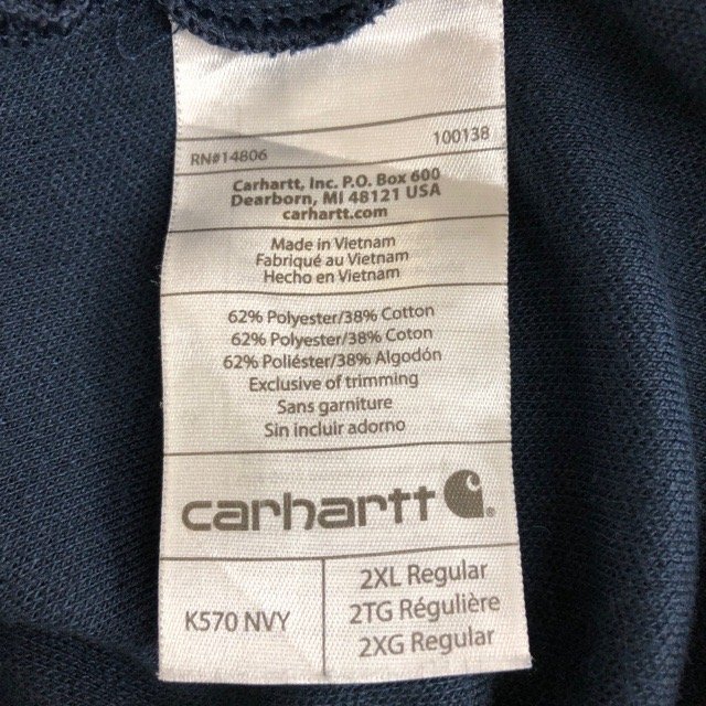 D220 カーハート 2XL アメリカ古着 ポロシャツタイプ コットン混 半袖Tシャツ ネイビー Carhartt メンズ
