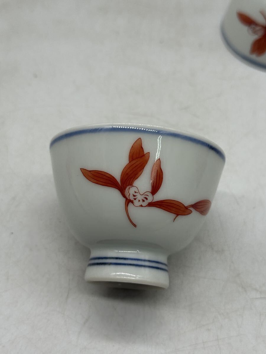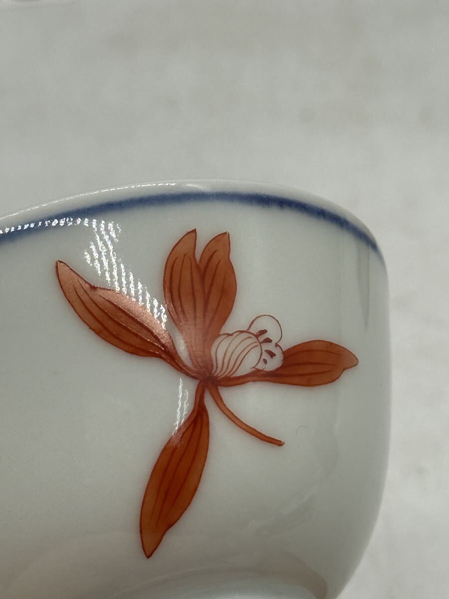 京焼の名工・平安北峰(大丸北峰) による、赤絵蘭花図の上品な茶碗5客揃です。