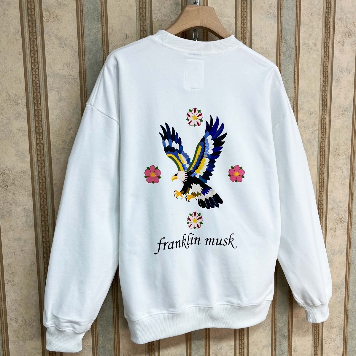個性・トレーナー 定価4万 FRANKLIN MUSK・アメリカ・ニューヨーク発 エジプト綿100% 保温 柔らか 鷹柄 花柄 スウェット プルオーバー 秋冬 サイズ3