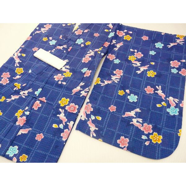 163 新品 女児 子供浴衣 青地にウサギ 110cm